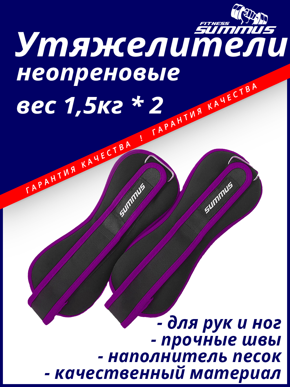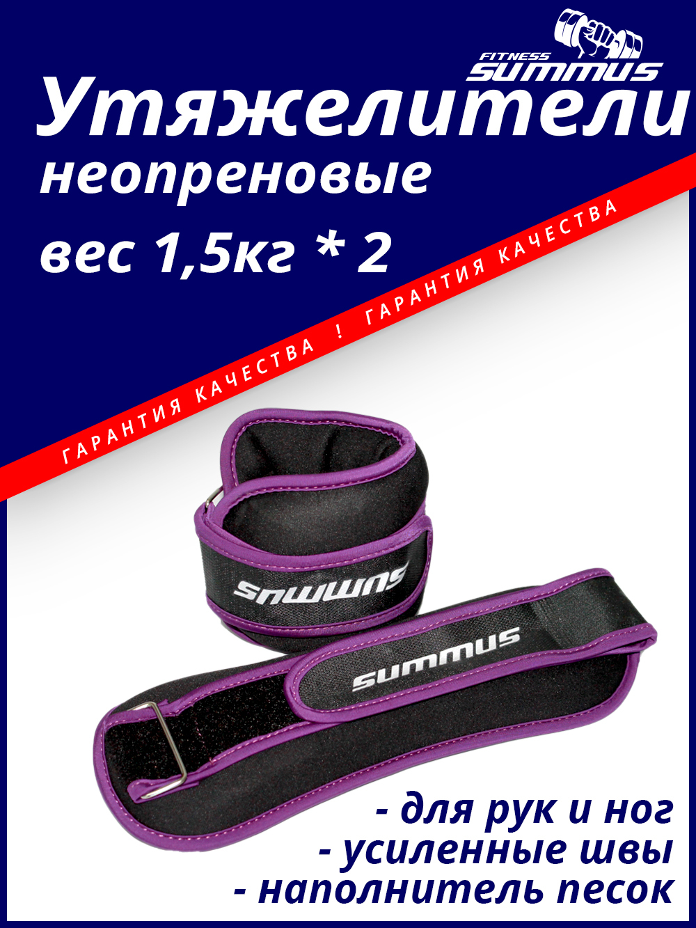 Утяжелители, Утяжелитель для йоги Summus для рук и ног 2 х 1.5кг, фиолетовый, черный