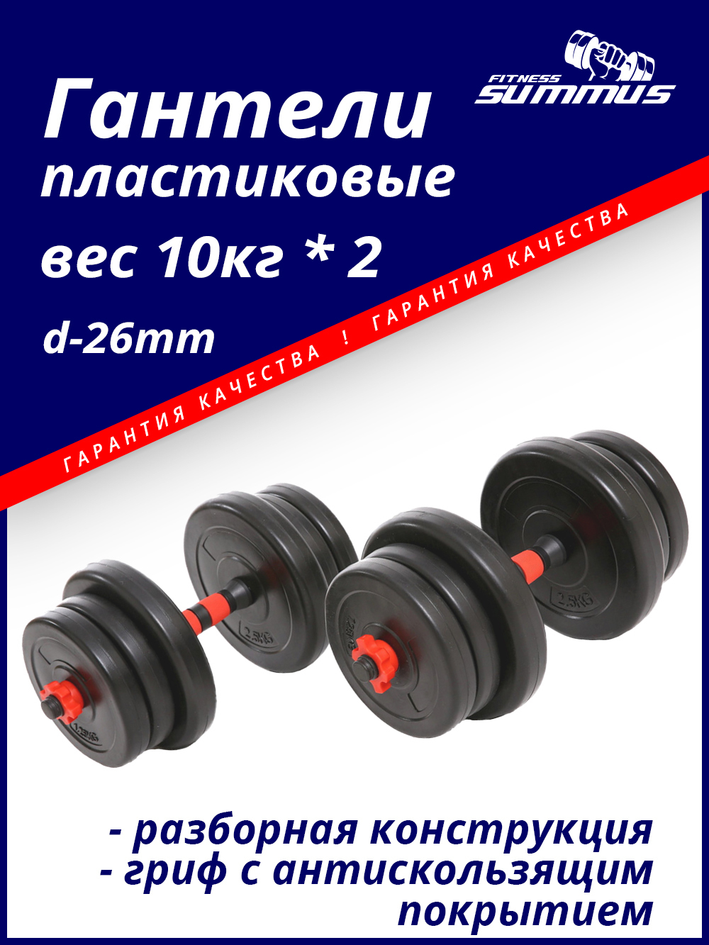 Гантели Summus длинный гриф., 2 шт. по 10 кг, черный цвет