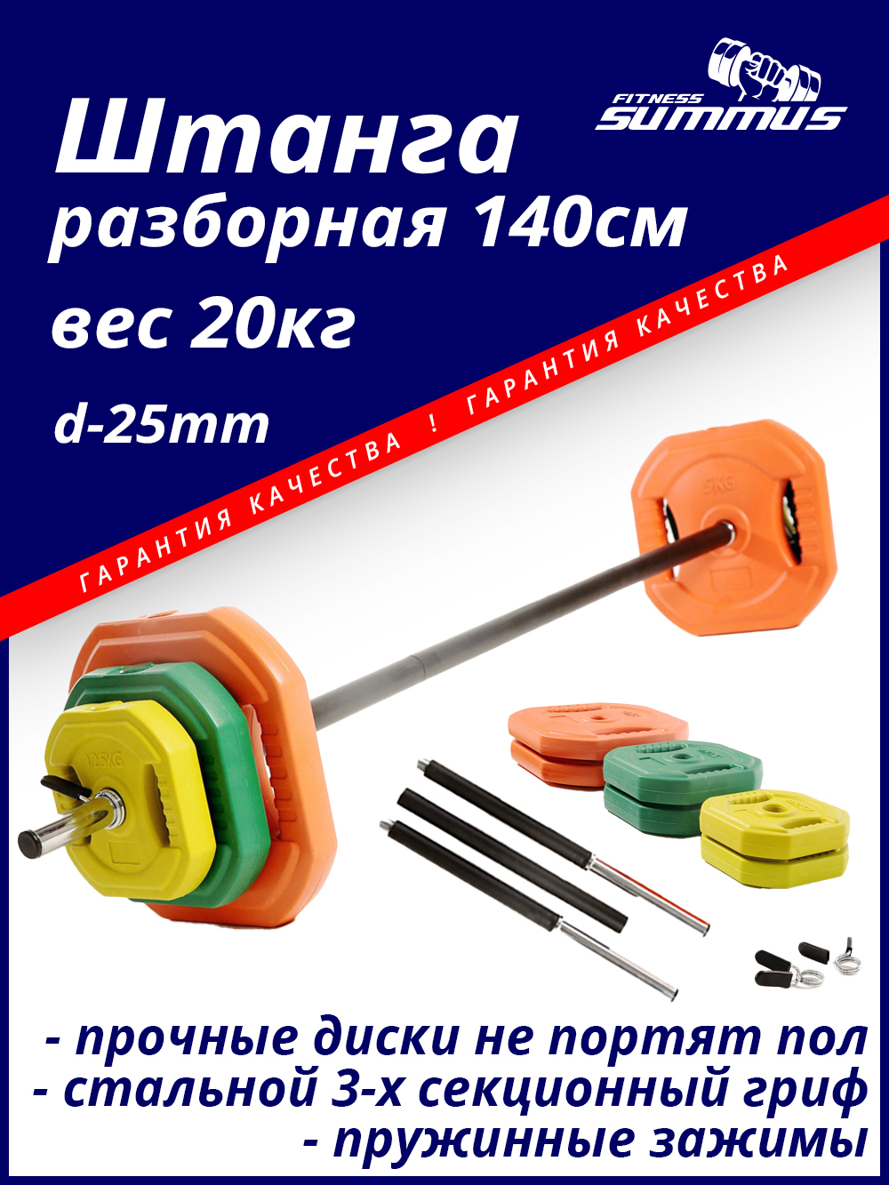 Штанга разборная для Body Pump Summus, 20 кг, гриф 140 см, d-25мм, арт. 500-125