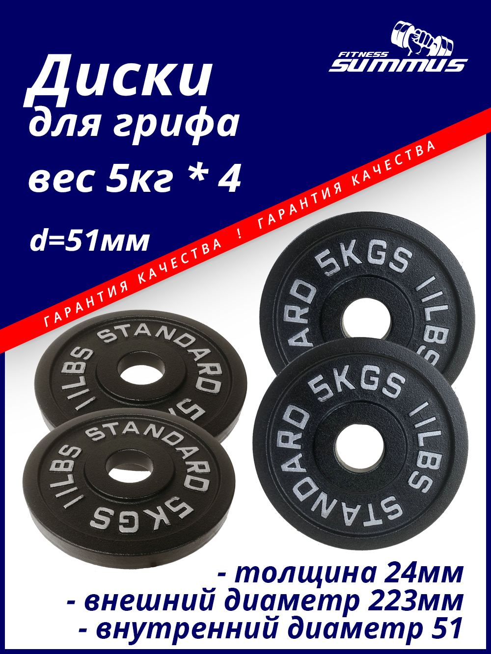 Диски для грифа Summus, чугунные 4 шт. по 5 кг, d-51мм, арт. 500-129