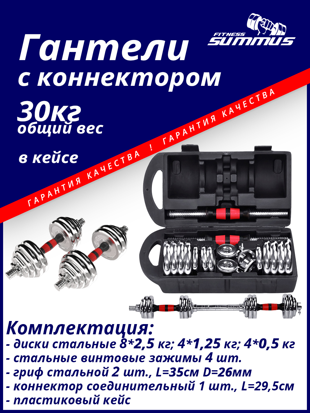 Гантели Summus разборные в кейсе, 2 шт. по 15 кг, черный, хром цвет