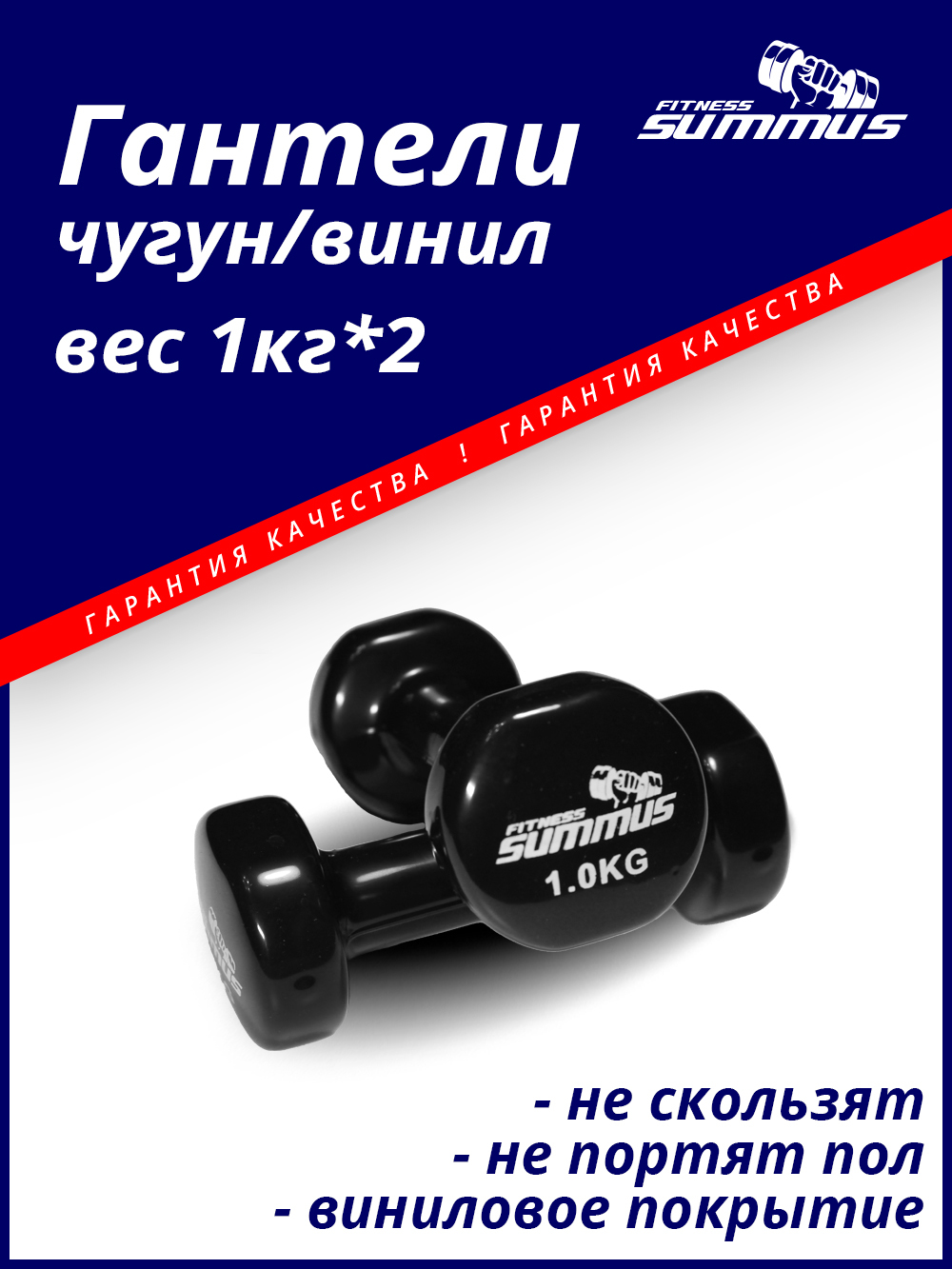 Гантели Summus винил/чугун, 2 шт. по 1 кг, черный матовый цвет