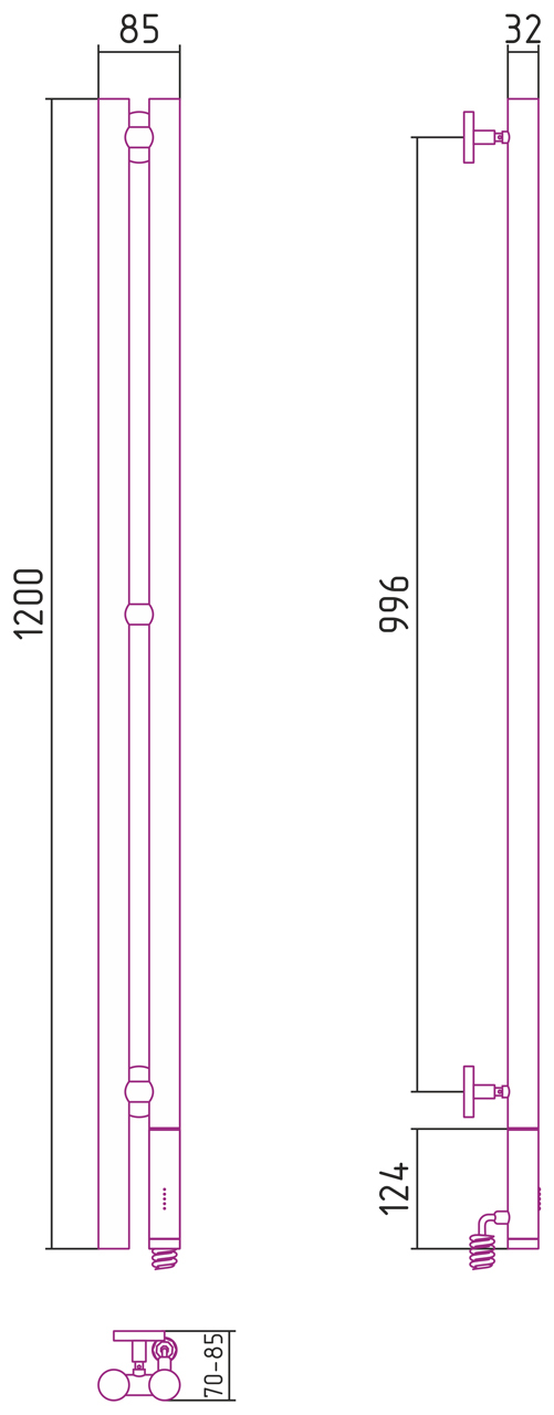 Полотенцесушитель Электрический Сунержа 85мм 1200мм форма Нестандартная