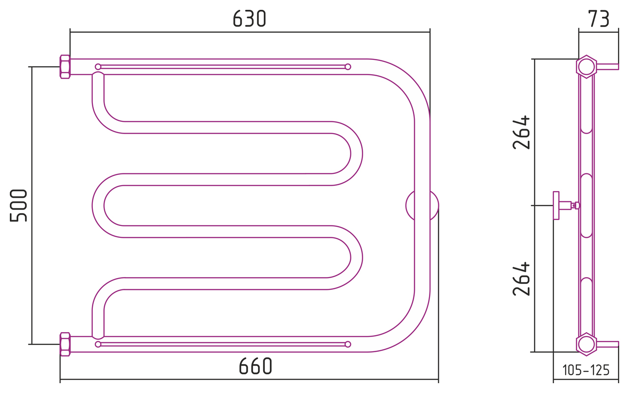 Водяной полотенцесушитель Сунержа ВПС-34 800x500