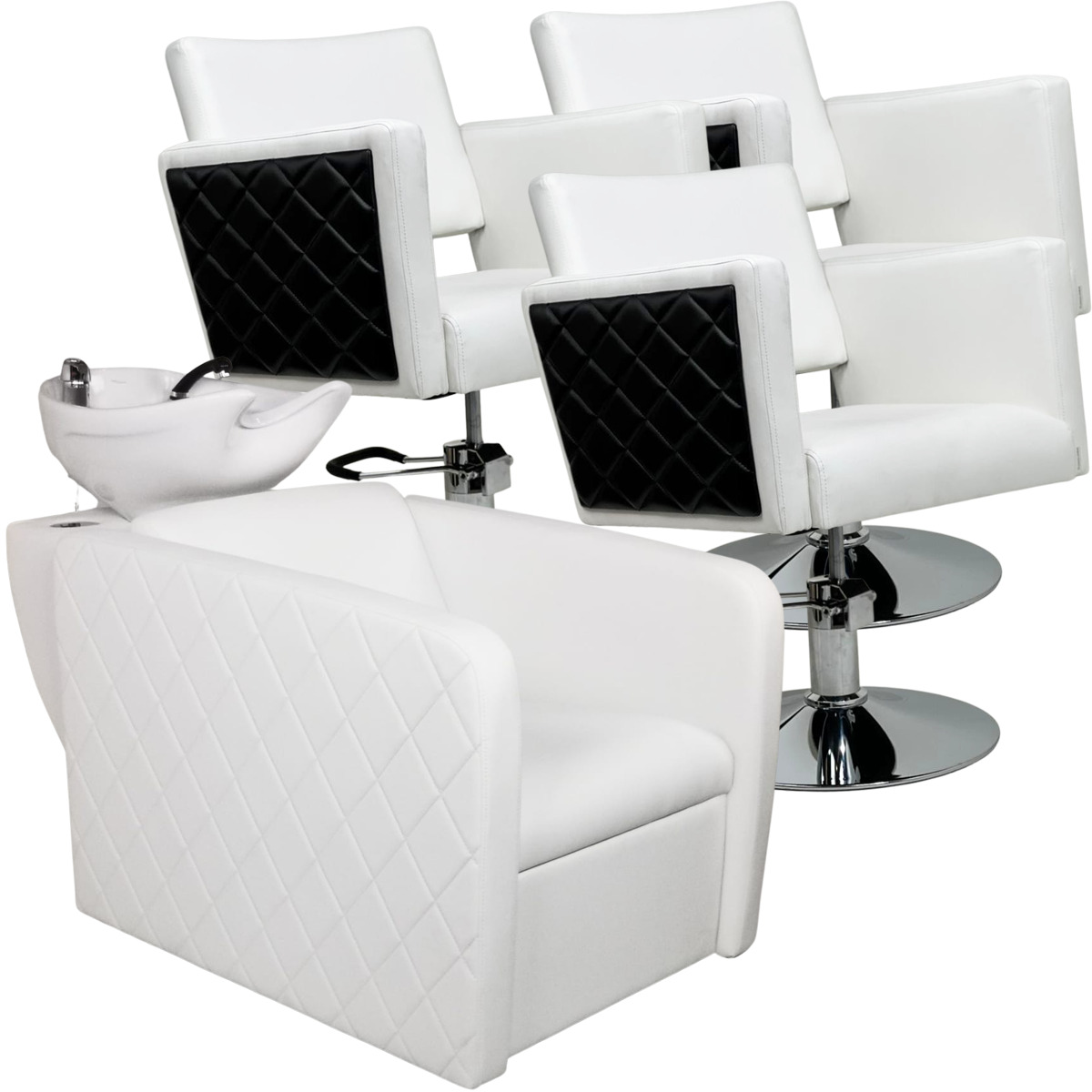 Парикмахерский комплект "Солген", Бежевый, 3 кресла гидравлика диск, 1 мойка глубокая белая раковина