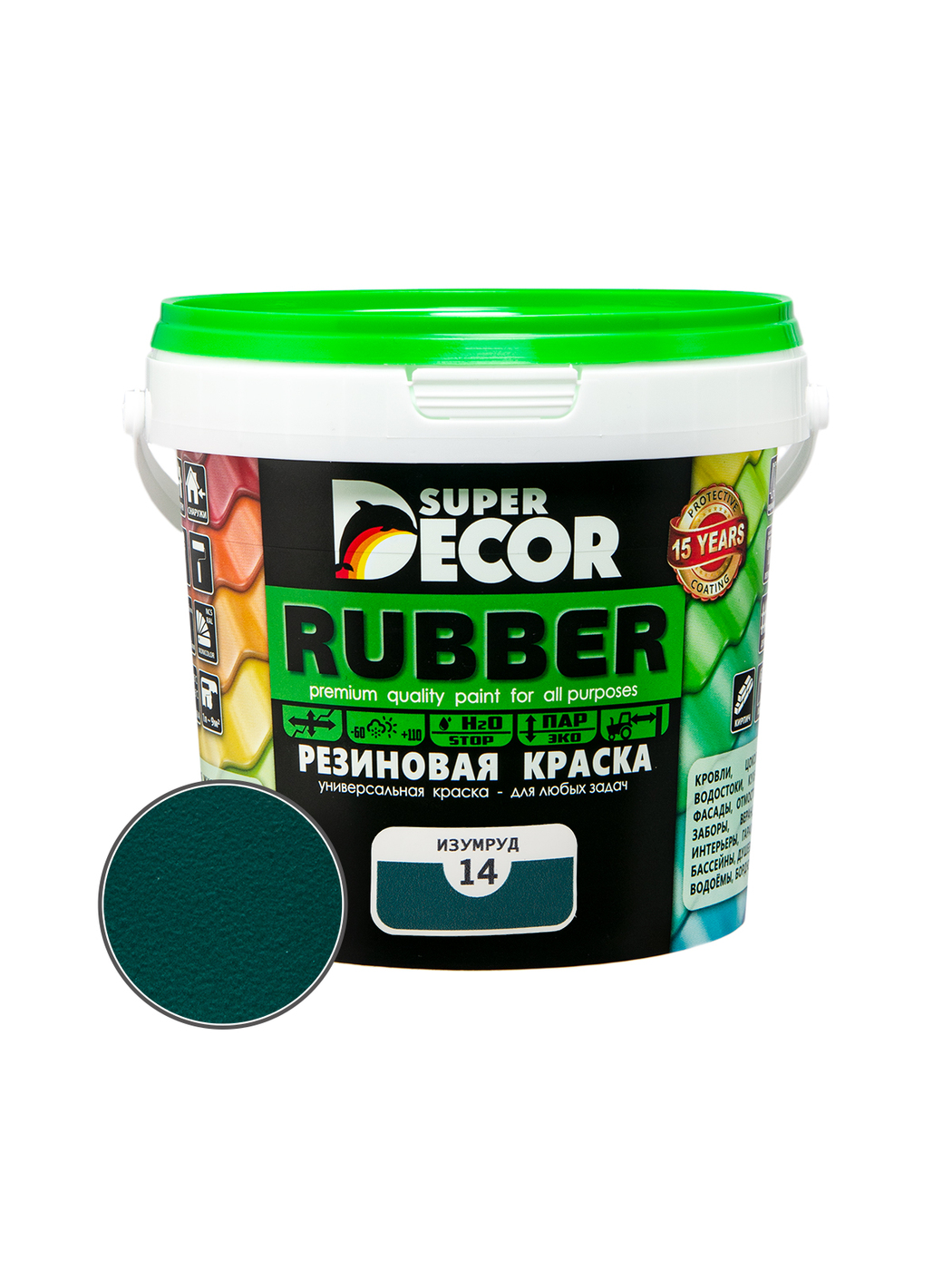 Краска Super Decor Резиновая Rubber Резиновая, Матовое покрытие, 1 кг, темно-зеленый