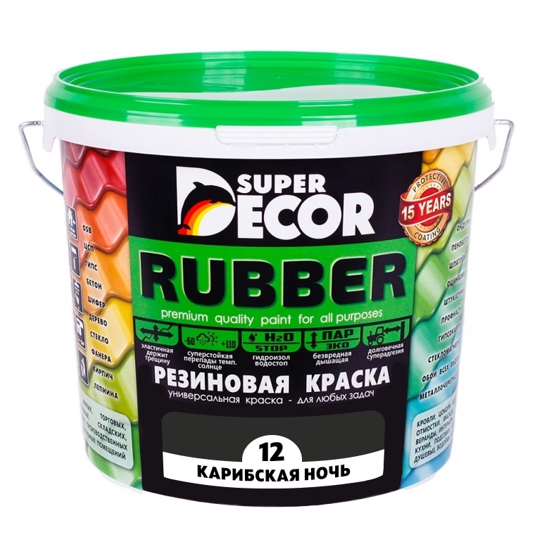 Краска Super Decor Резиновая Резиновая, Акриловая, Водно-дисперсионная, Матовое покрытие, 6 кг, черный