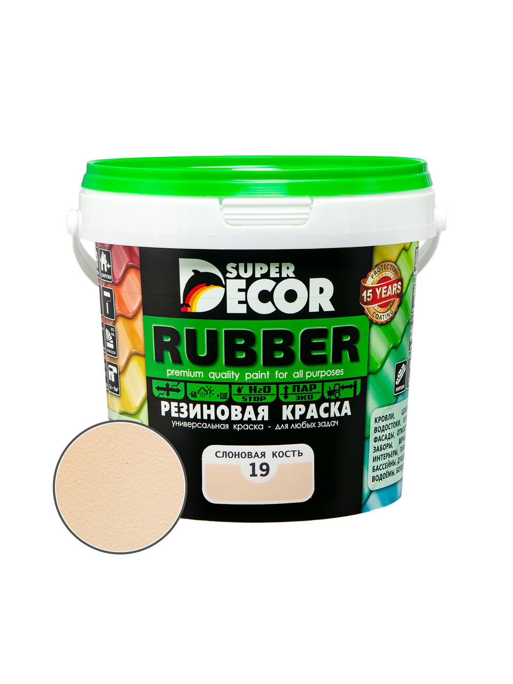 Краска Super Decor Резиновая Резиновая, Акриловая, Водно-дисперсионная, Матовое покрытие, 12 кг, слоновая кость