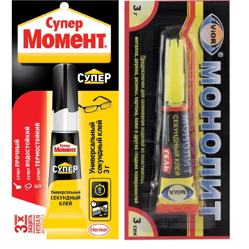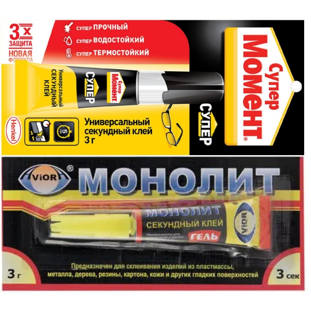 Суперклей/Набор Супер-клей Момент 3г универсальный+Супер-клей Aviora МОНОЛИТ ГЕЛЬ 3г