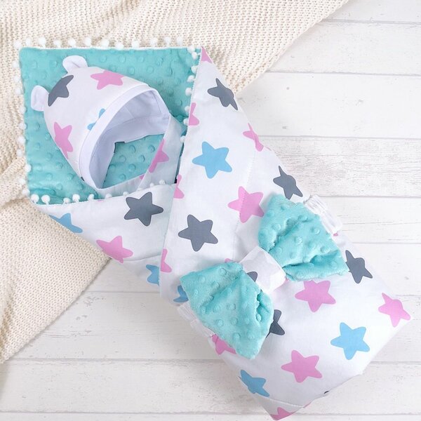 Конверт на выписку JustCute "Звездочки" (розовые) +шапочка Лето