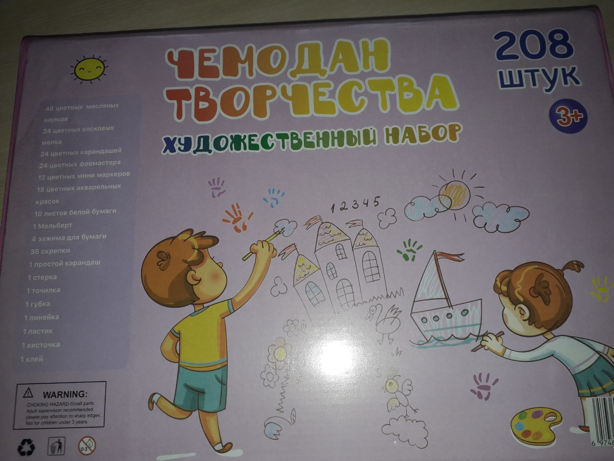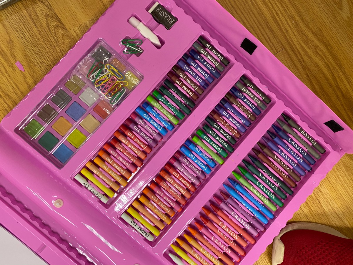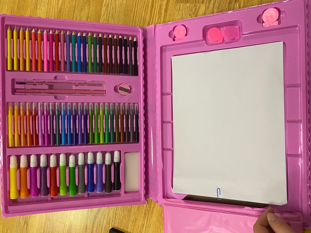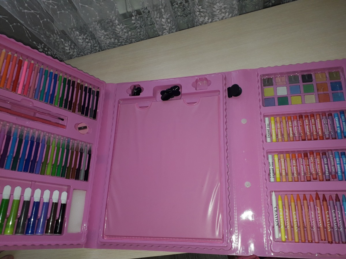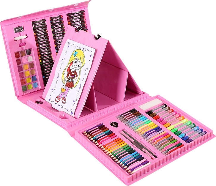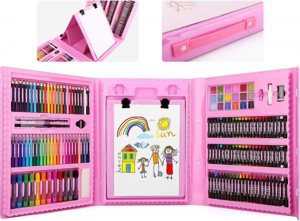 Чемоданчик "Набор Юного художника" для рисования Art Set 208 предметов с мольбертом, розовый