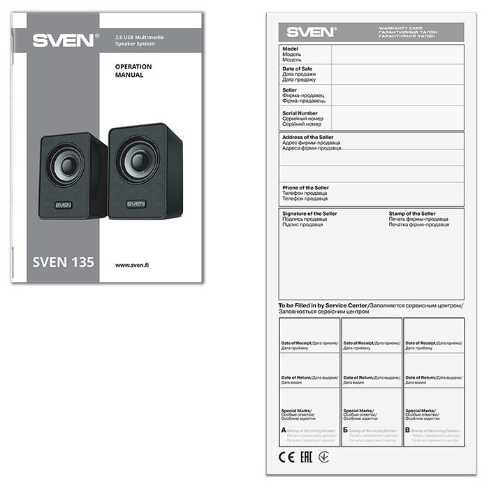 Колонки для компьютера / Акустическая система 2.0 SVEN 135 чёрный / USB / мощность 2x3 ВтRMS