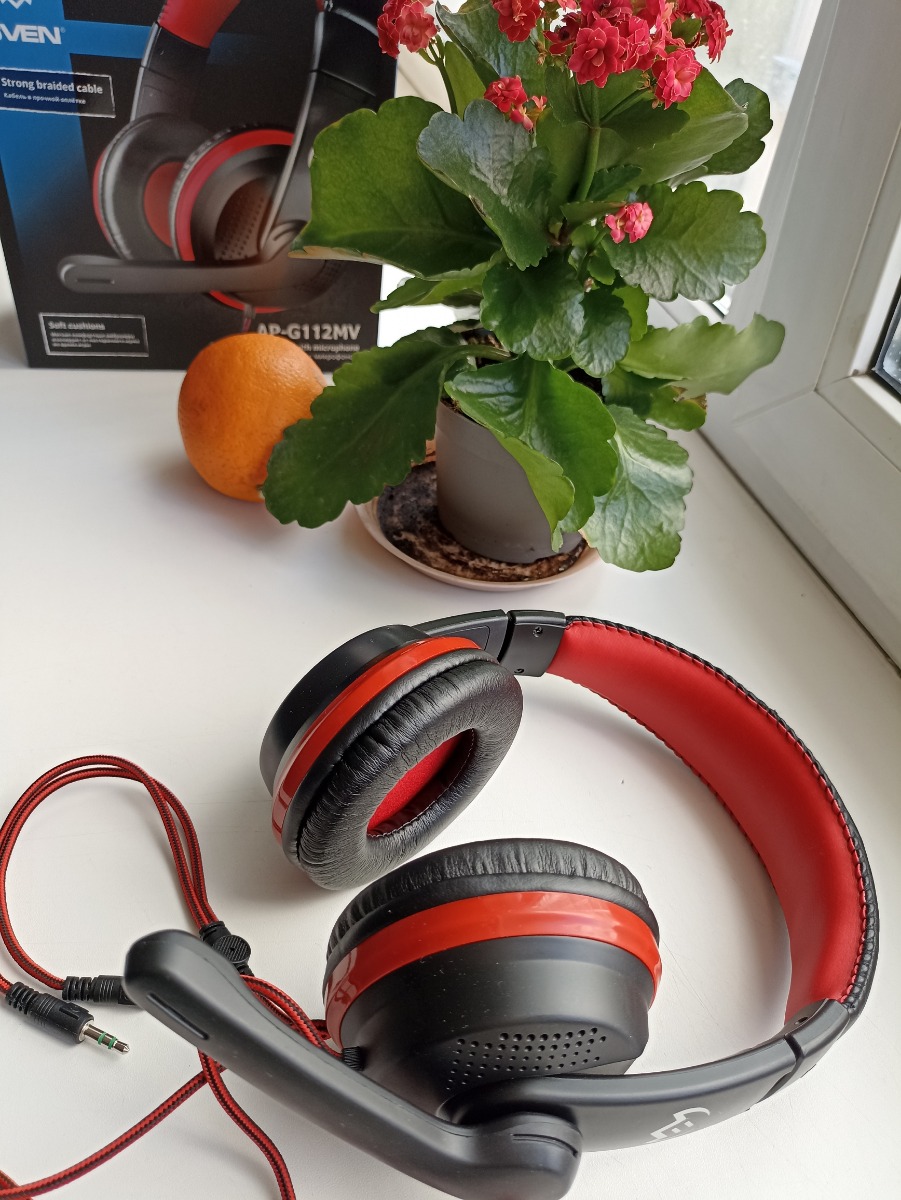 Игровые наушники, Компьютерная гарнитура Sven AP-G112MV, черный, красный