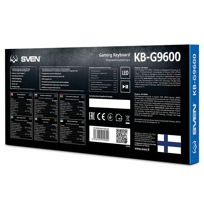 Игровая клавиатура проводная Sven KB-G9600, черный