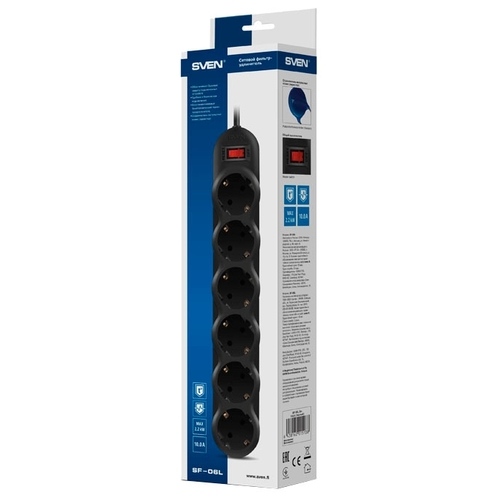 Сетевой фильтр SVEN SF-06L черный, 5 м