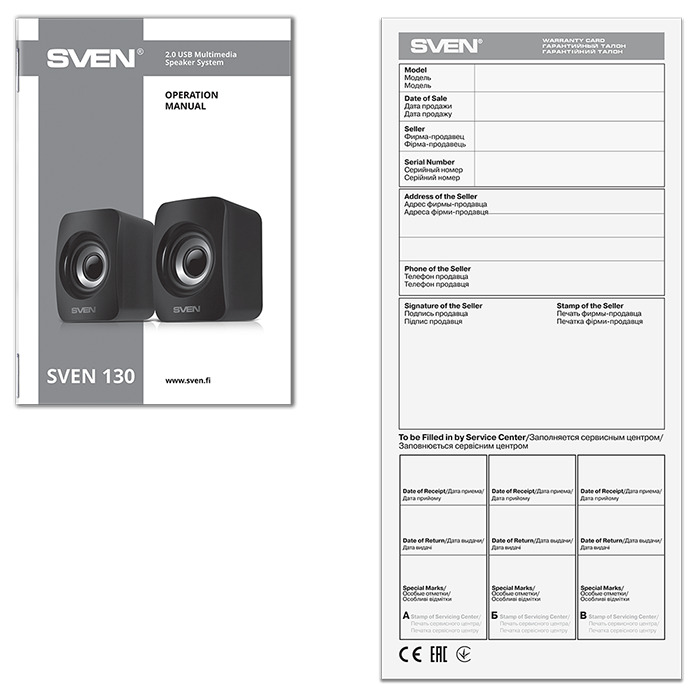 Колонки для компьютера / Акустическая система 2.0 SVEN 130 чёрный / USB / мощность 2x3 ВтRMS