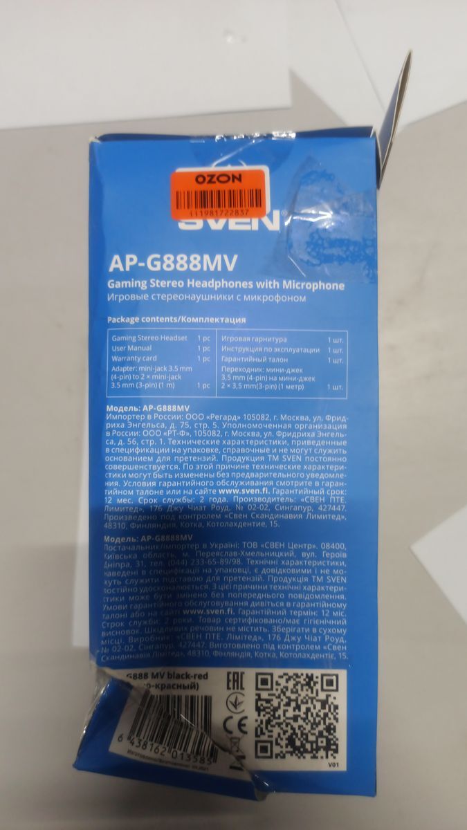 Компьютерная гарнитура, Игровые наушники Sven AP-680MV, черный
