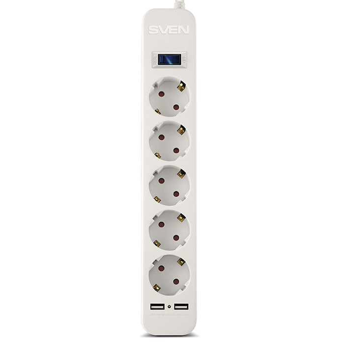 Фильтр SVEN SF-05LU 1,8 м (5 евро розеток,2 USB) белый