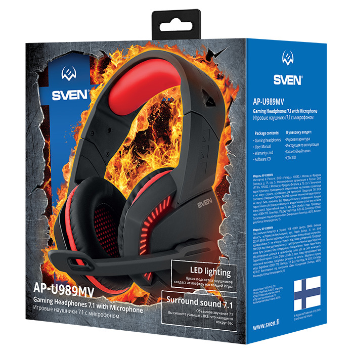 Компьютерная гарнитура Sven AP-U989MV, черный, красный