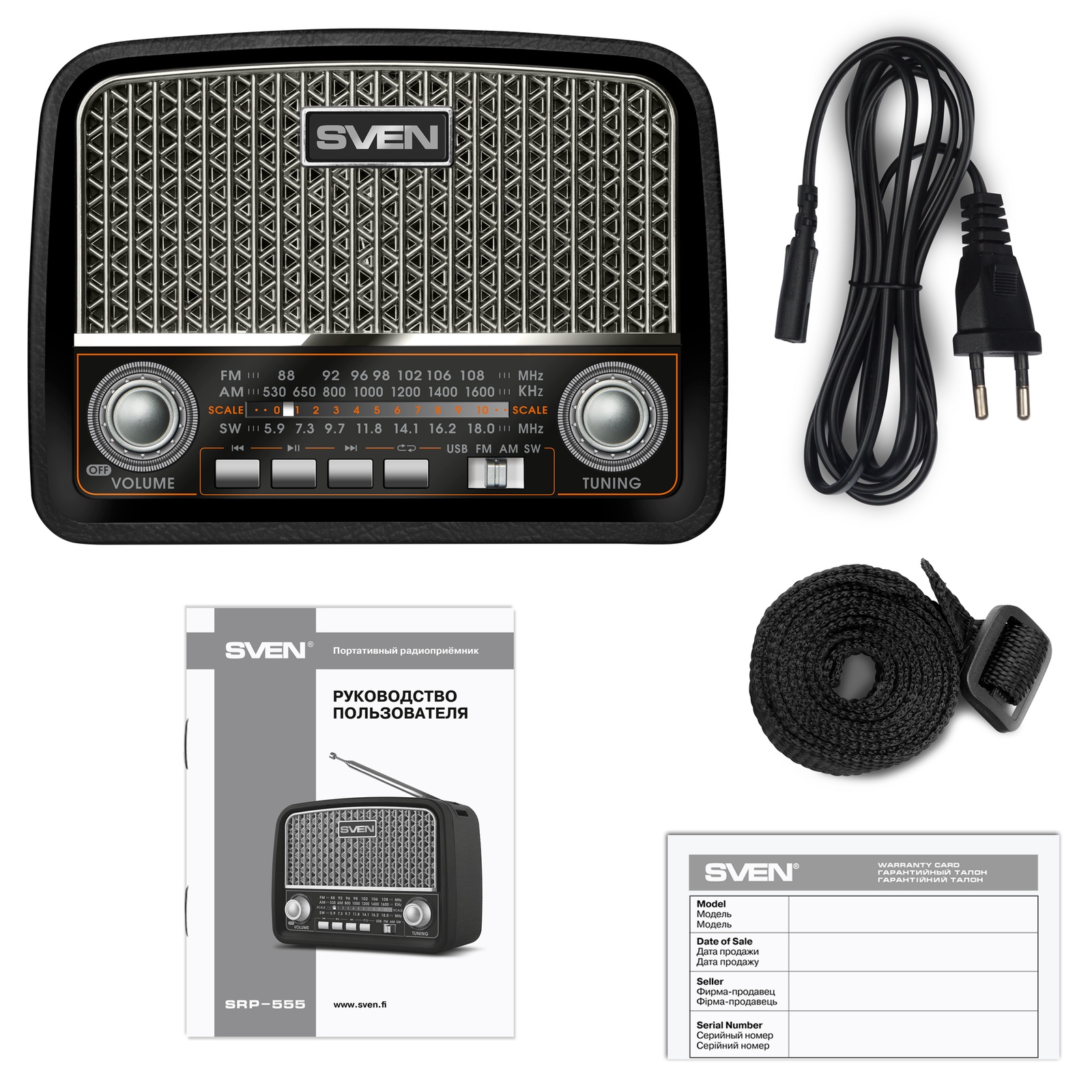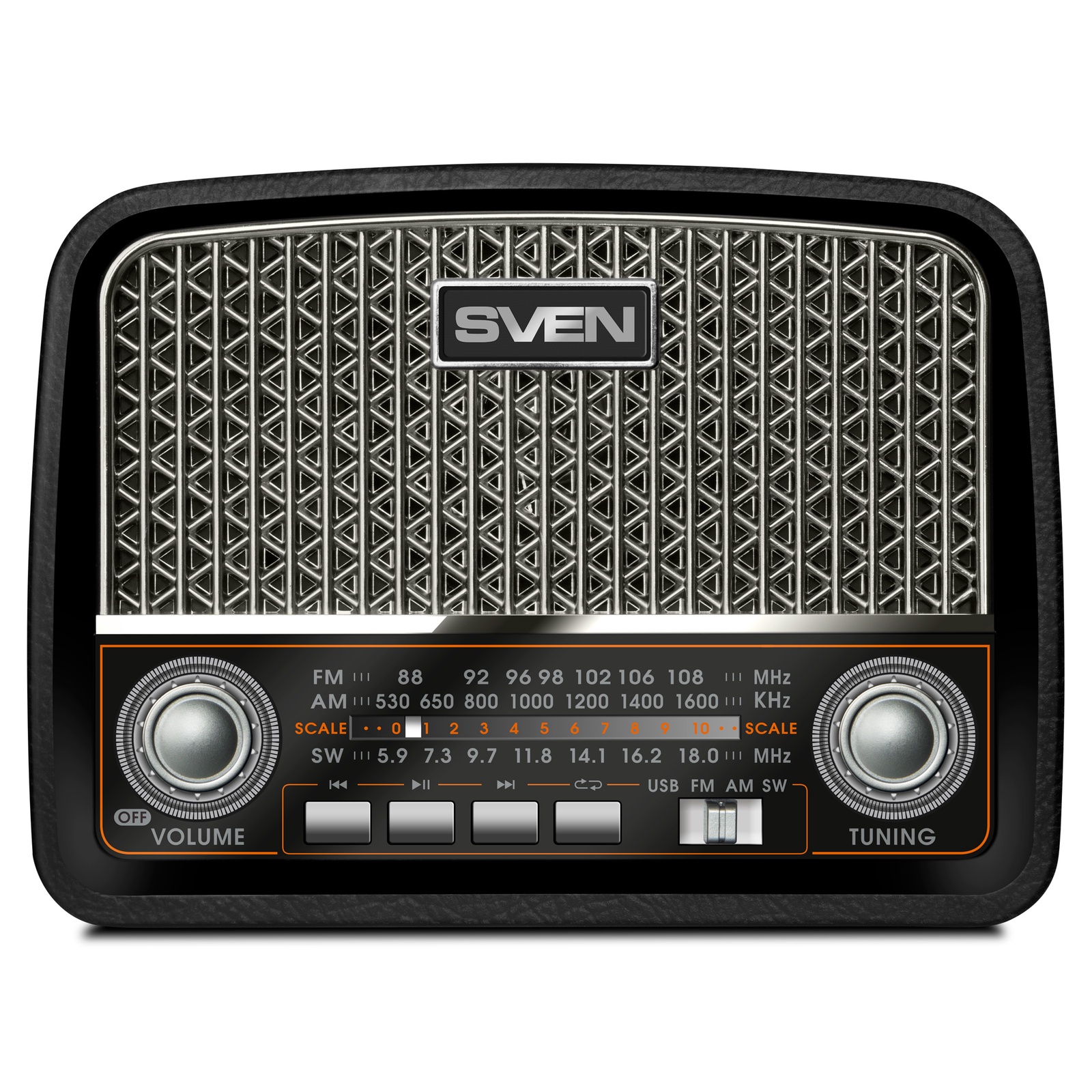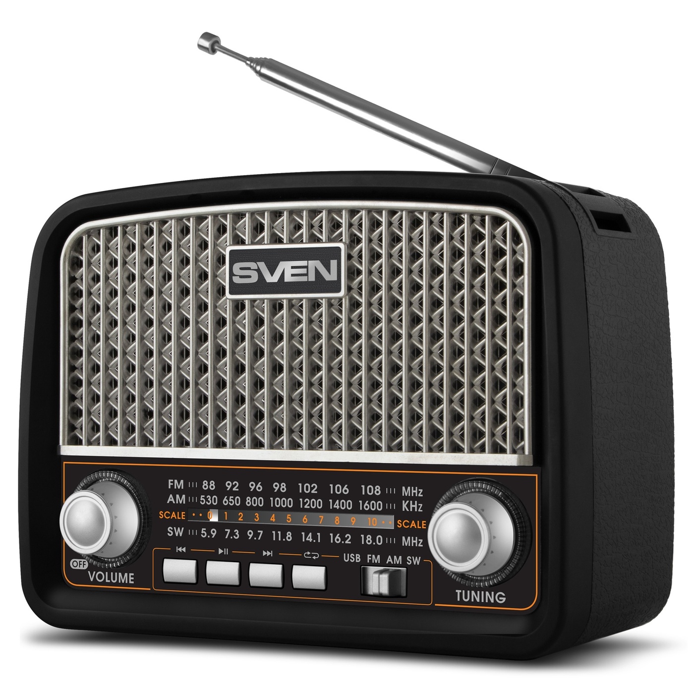 Радиоприемник SVEN SRP-555, черный-серебро/ 3 Вт/ FM/AM/SW/ USB/ SD/microSD/ встроенный аккумулятор