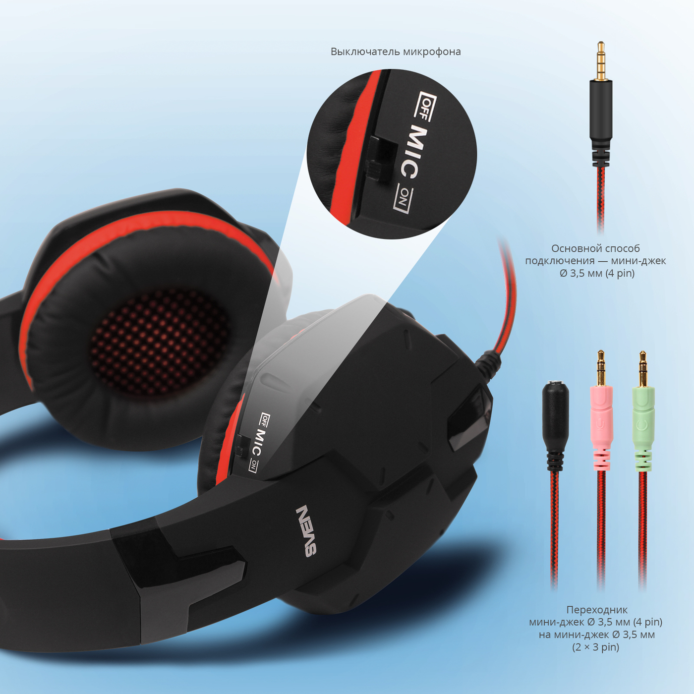 Игровые наушники Sven AP-G988MV, черный, красный