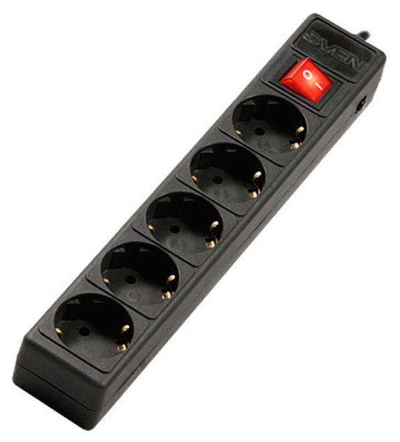 Сетевой фильтр Sven Optima Base 5, 5 розеток, 10 А, 1.8 м, черный