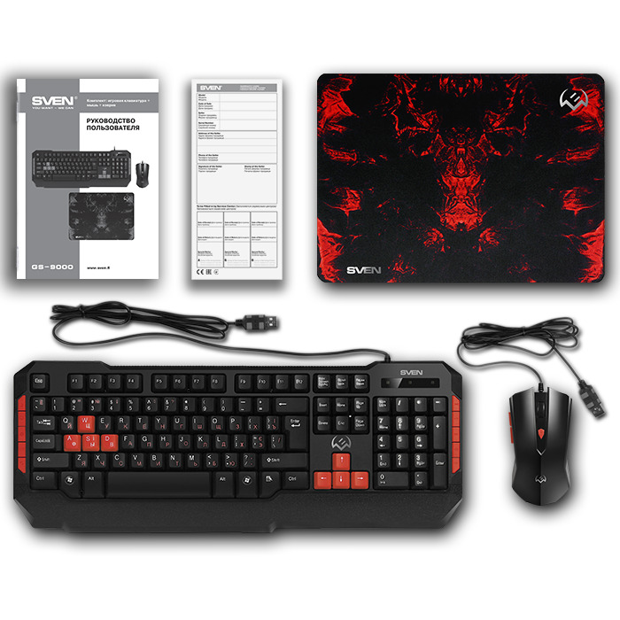 Игровой набор клавиатура+мышь+коврик SVEN GS-9000, черный