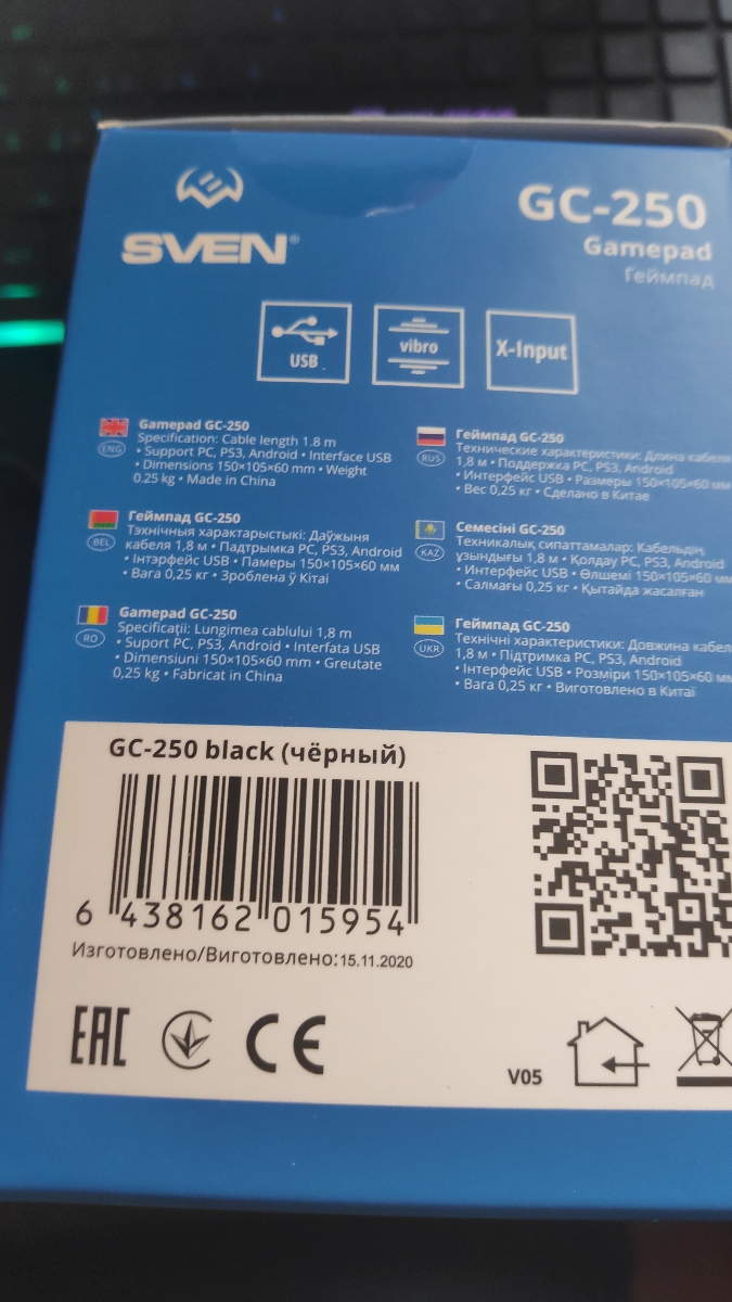 Геймпад Sven GC-250 для PC/PlayStation 3, геймпад, черный