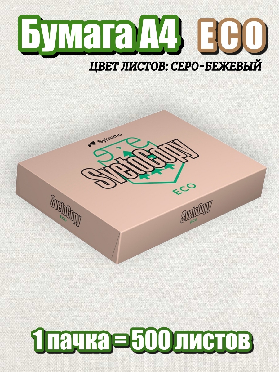 Бумага для принтера А4, неотбеленная, SvetoCopy ECO для офиса, 1 пачка (500 листов)