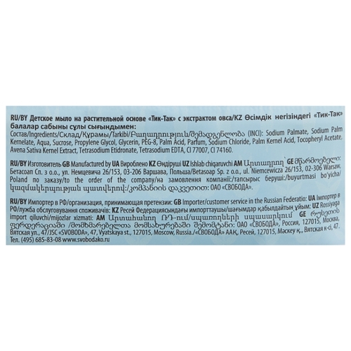 СВОБОДА Тик-Так Мыло детское с экстрактом овса