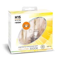 Галогенные лампы серия Yellow 3000K 12V H15 15/55W+W5W yellow, комплект 2шт.