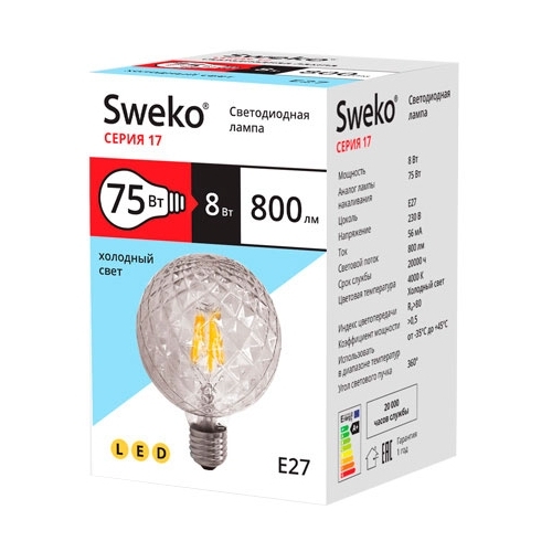 Лампа светодиодная Sweko 38661, E27, ST64, 8Вт