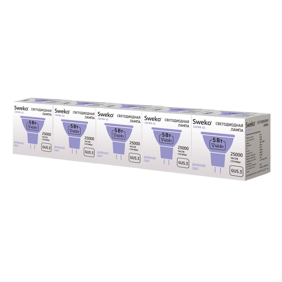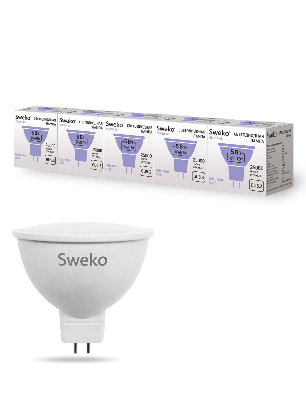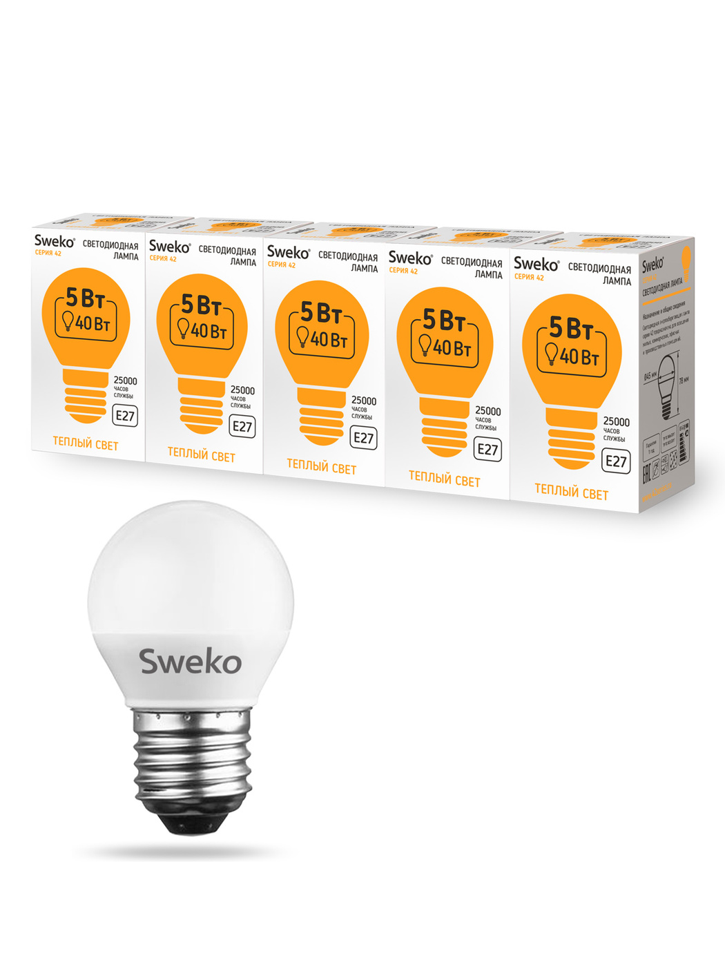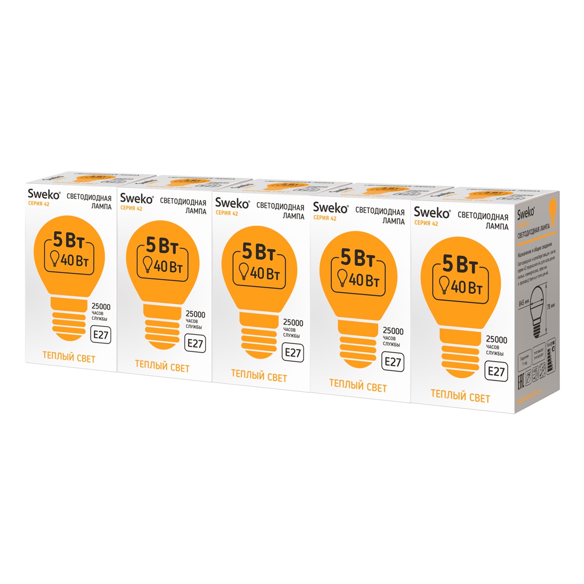 Лампочка Sweko E27, G45, 5Вт 3000К 42LED (упаковка 5 шт), Теплый белый свет, Светодиодная, 5 шт.