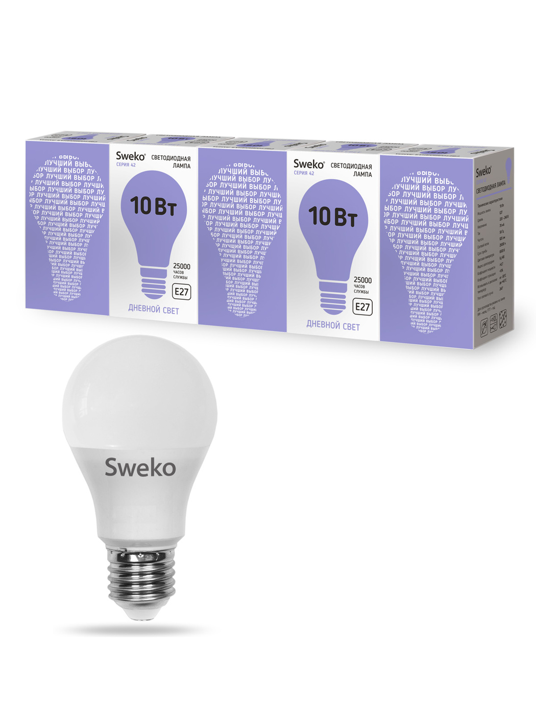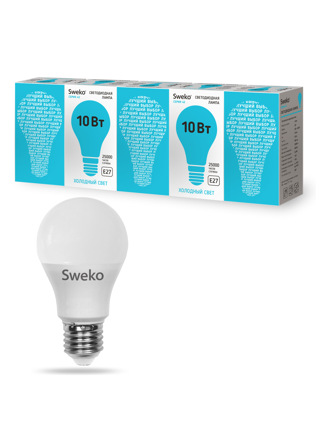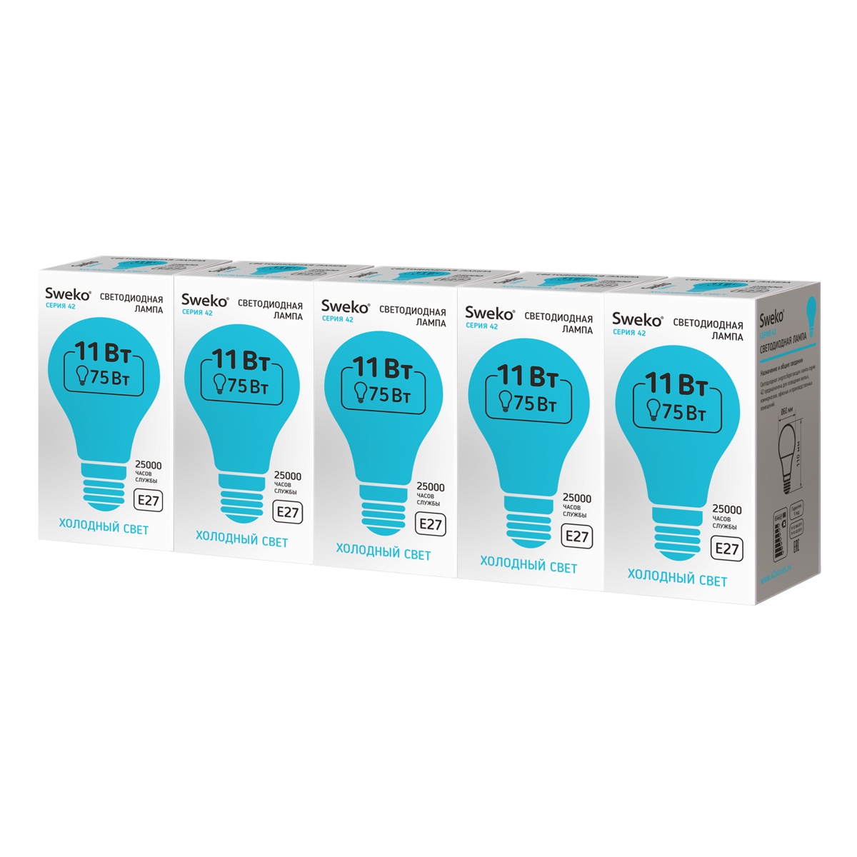 Лампочка Sweko E27, A60, 11Вт 4000К 42LED (упаковка 5 шт), Холодный белый свет, Светодиодная, 5 шт.