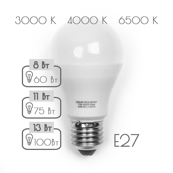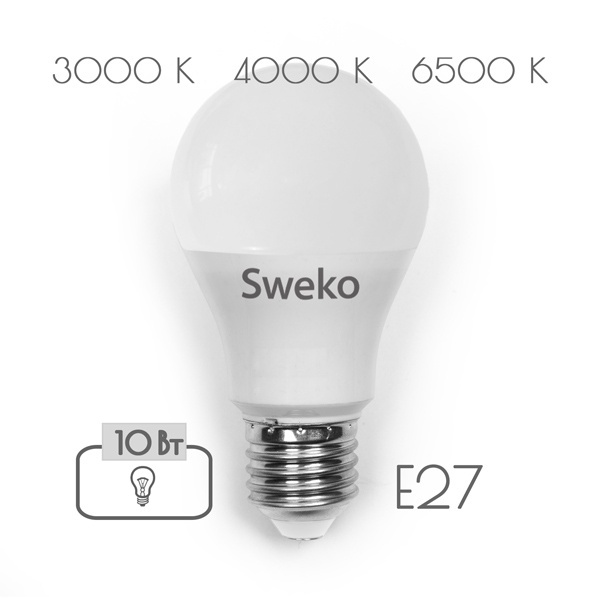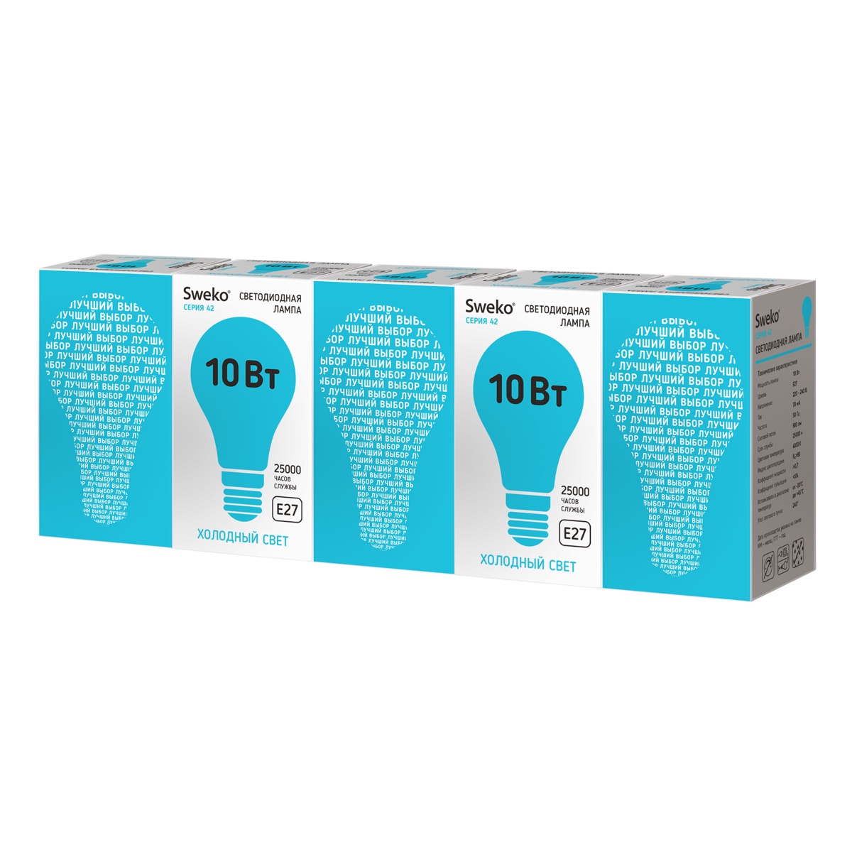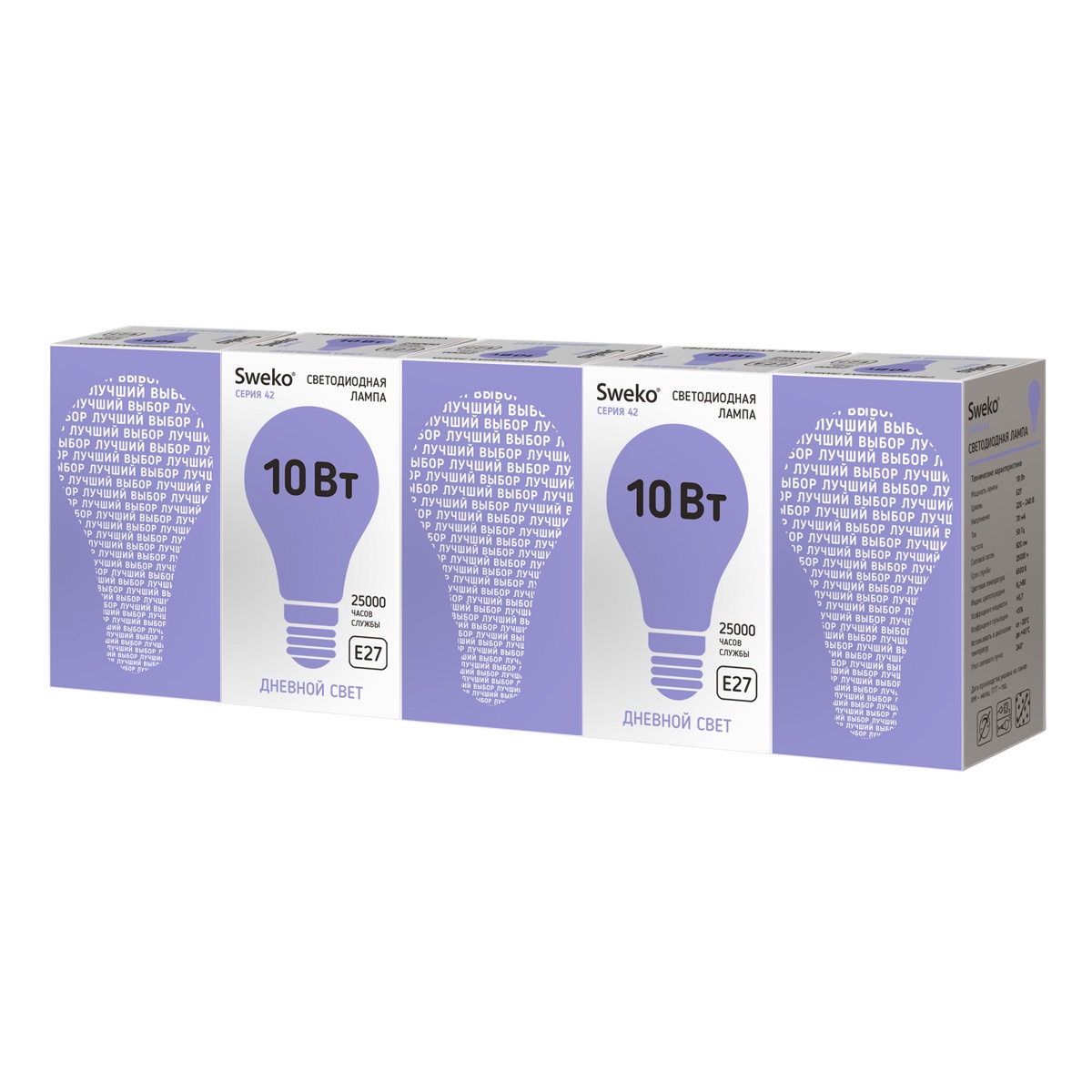 Лампочка Sweko E27, A60, 11Вт 4000К 42LED (упаковка 5 шт), Холодный белый свет, Светодиодная, 5 шт.