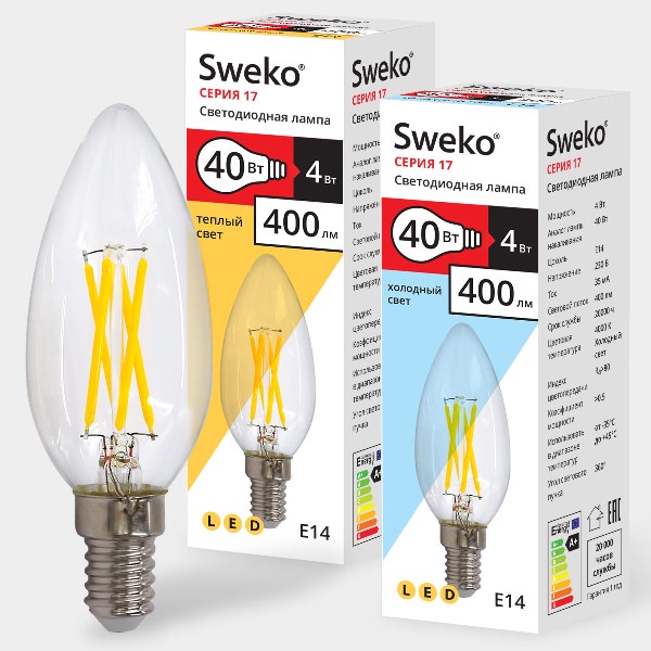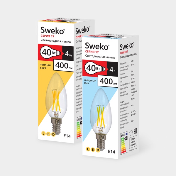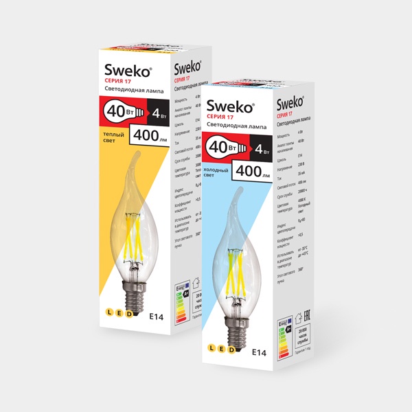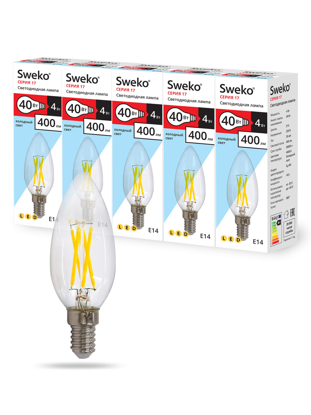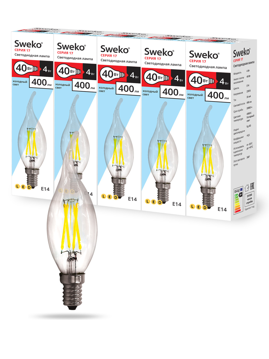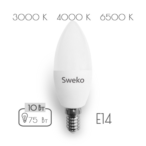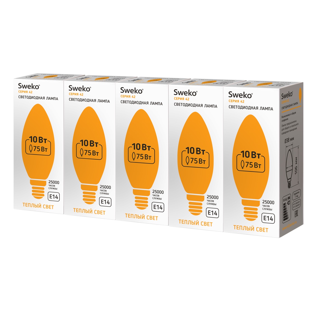 Лампочка Sweko E14, C35, 10Вт 3000K 42LED (упаковка 5 шт), Теплый белый свет, Светодиодная, 5 шт.
