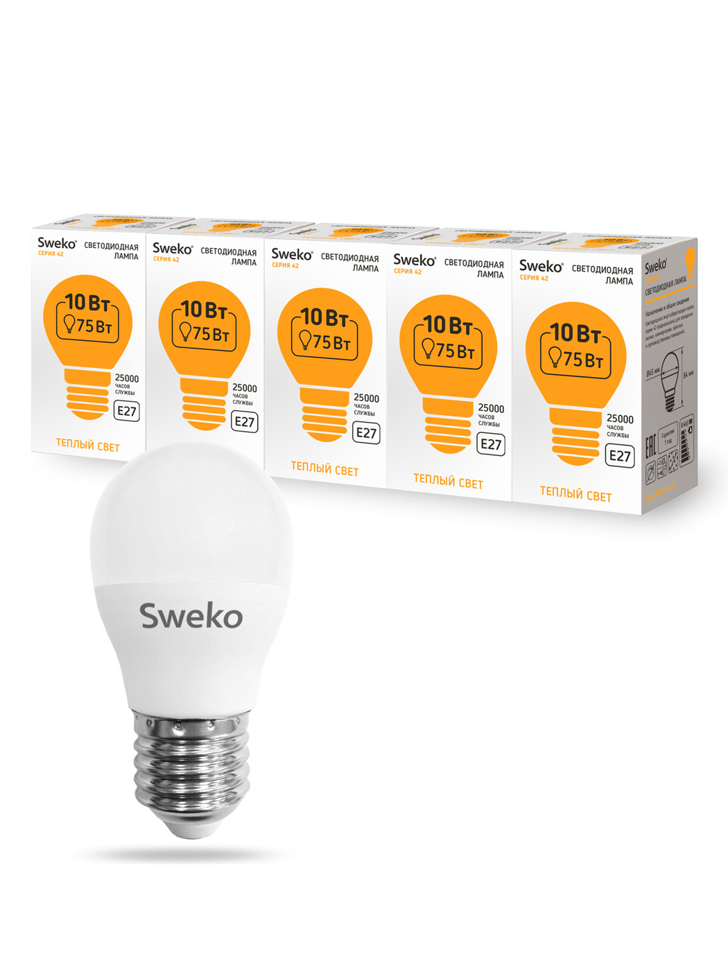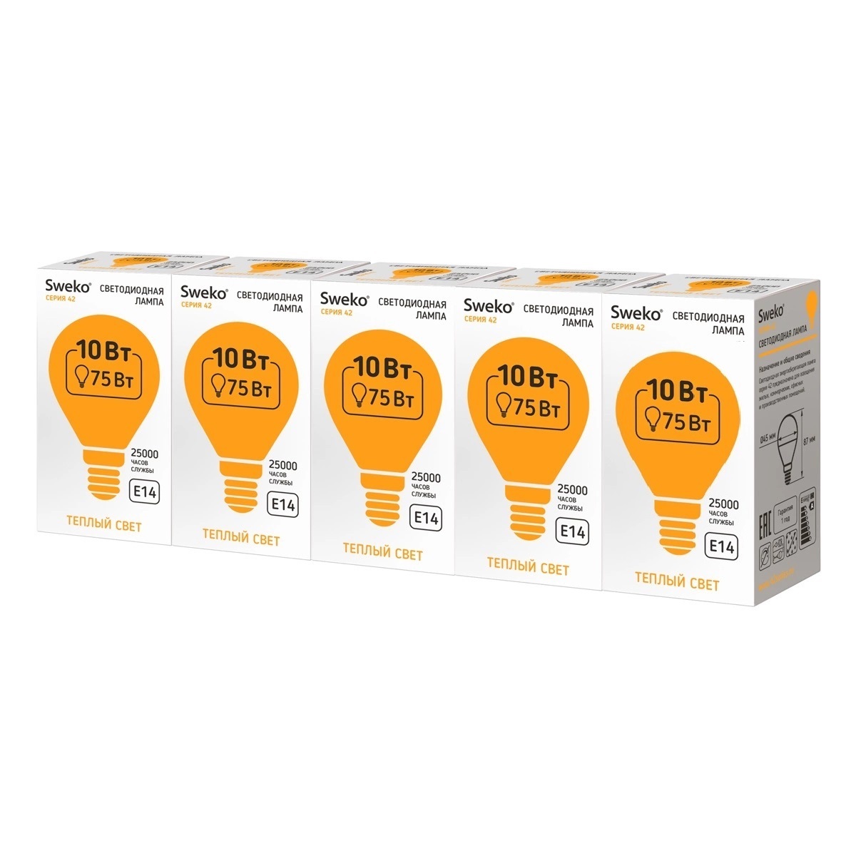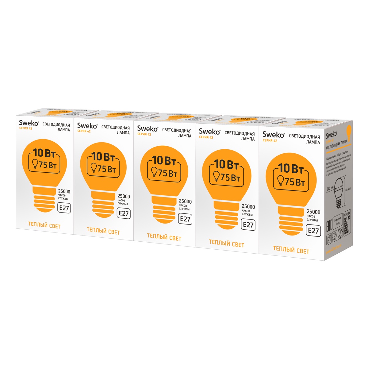 Лампочка Sweko E27, G45, 10Вт 3000K 42LED (упаковка 5 шт), Теплый белый свет, Светодиодная, 5 шт.