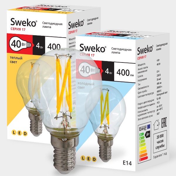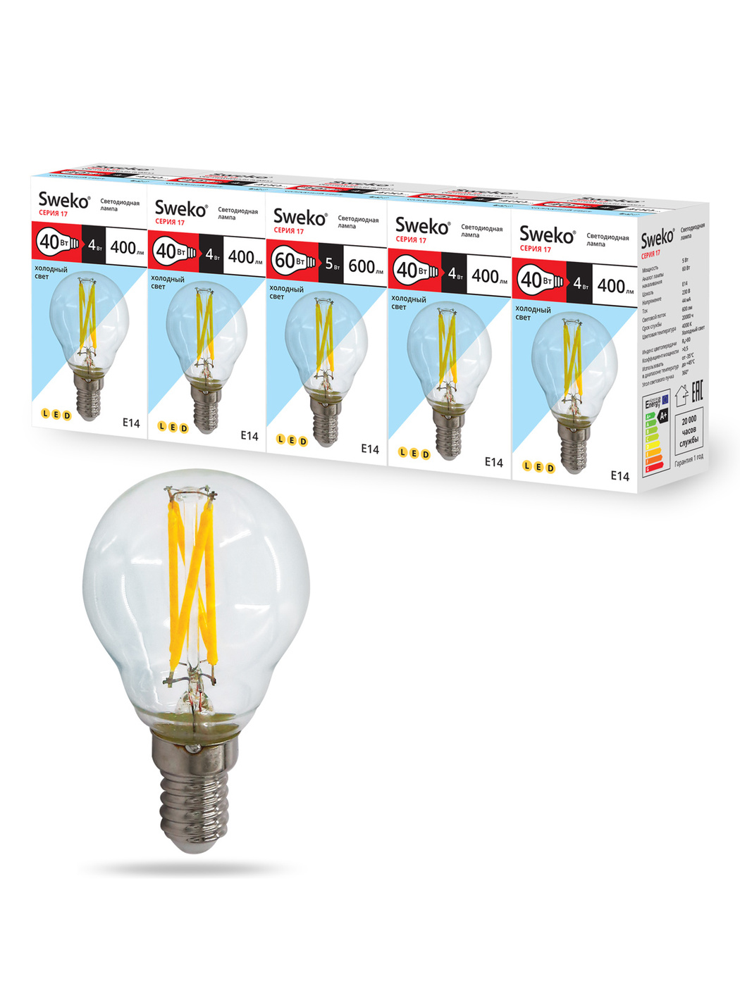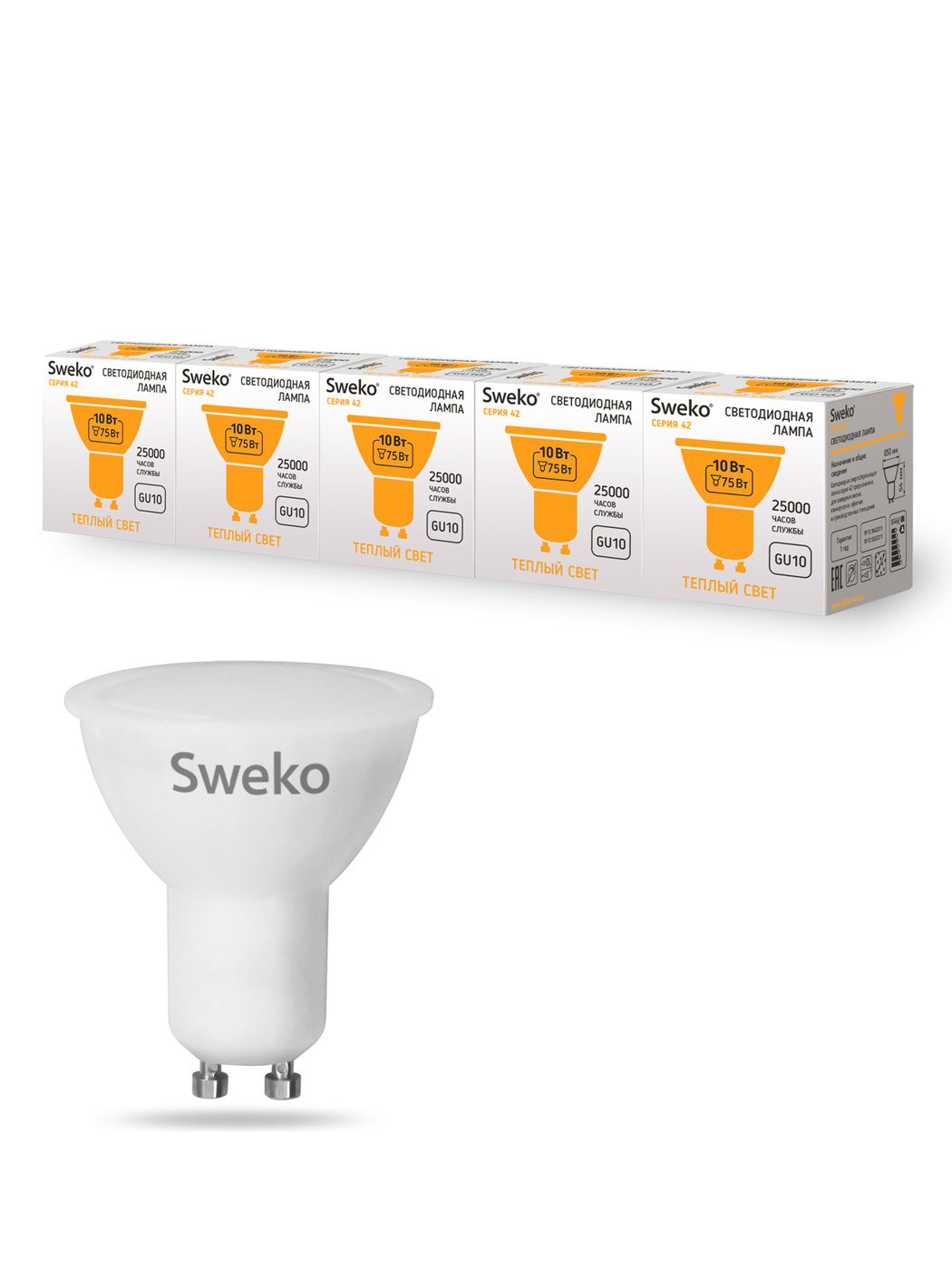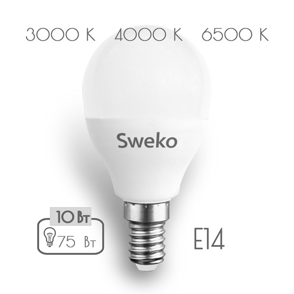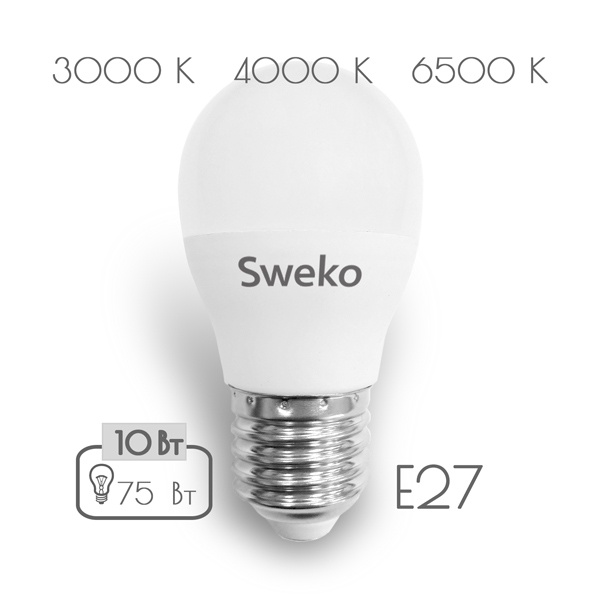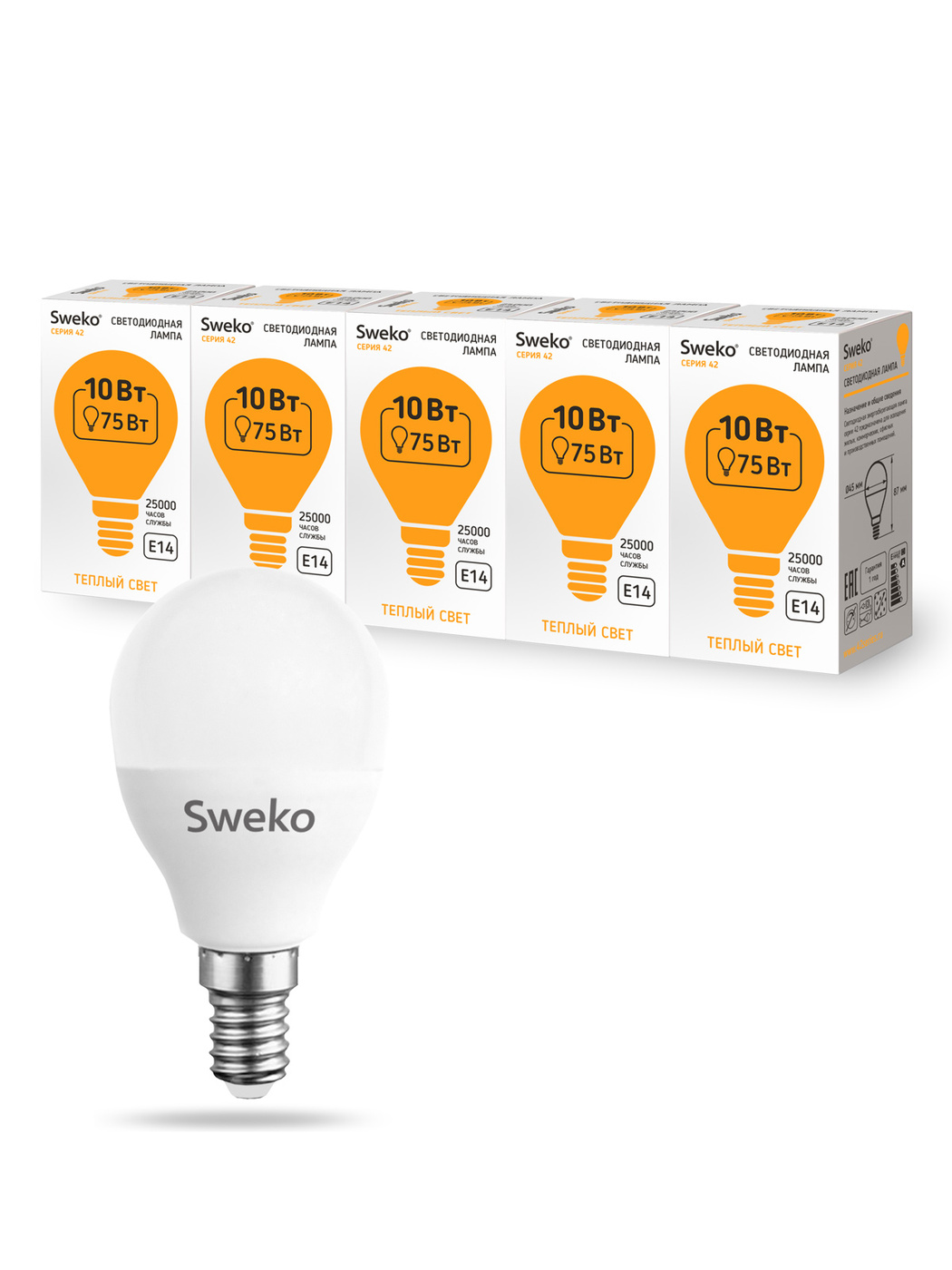Лампочка Sweko E27, G45, 10Вт 3000K 42LED (упаковка 5 шт), Теплый белый свет, Светодиодная, 5 шт.