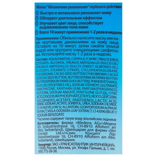 Swiss Image Маска Абсолютное увлажнение глубокого действия