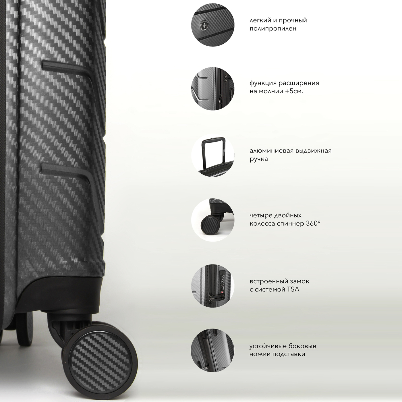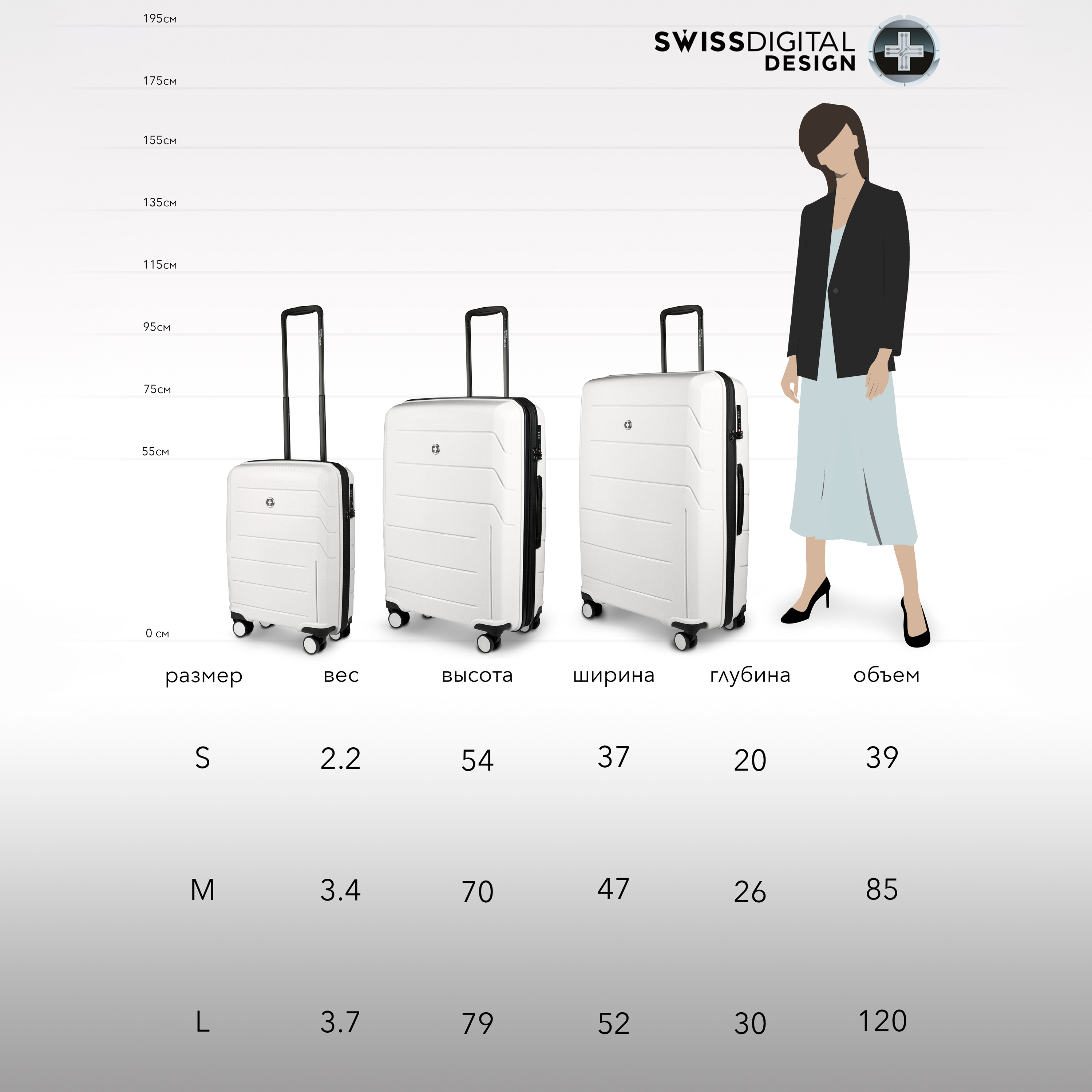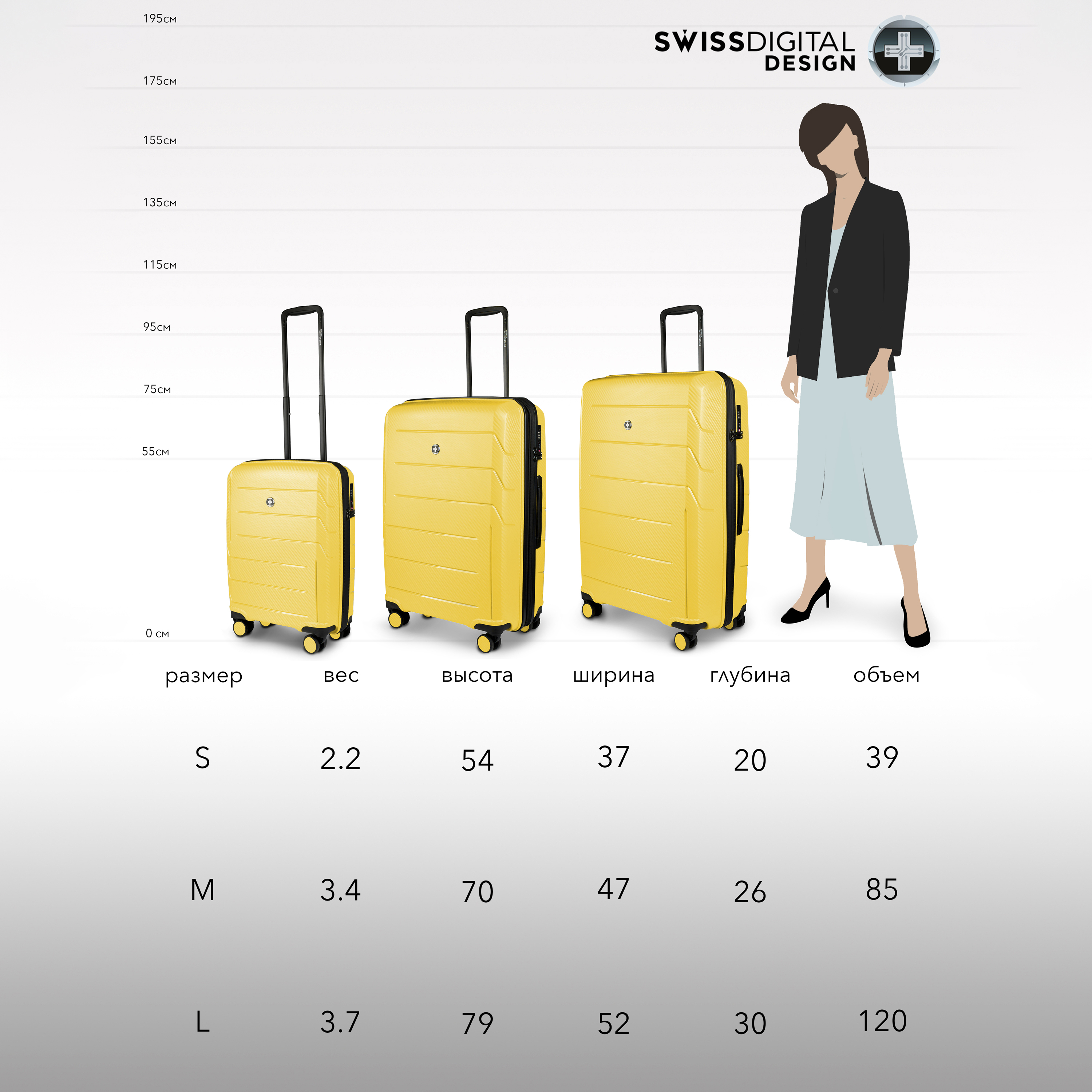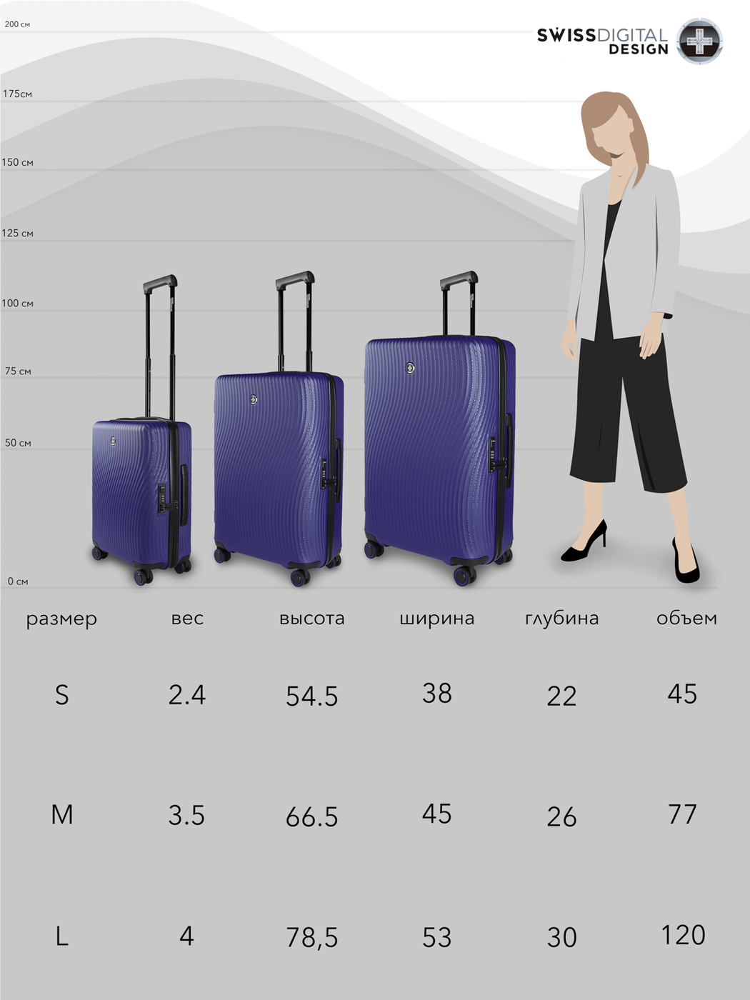 Чемодан Swissdigital, Полипропилен, 55 см, 35 л