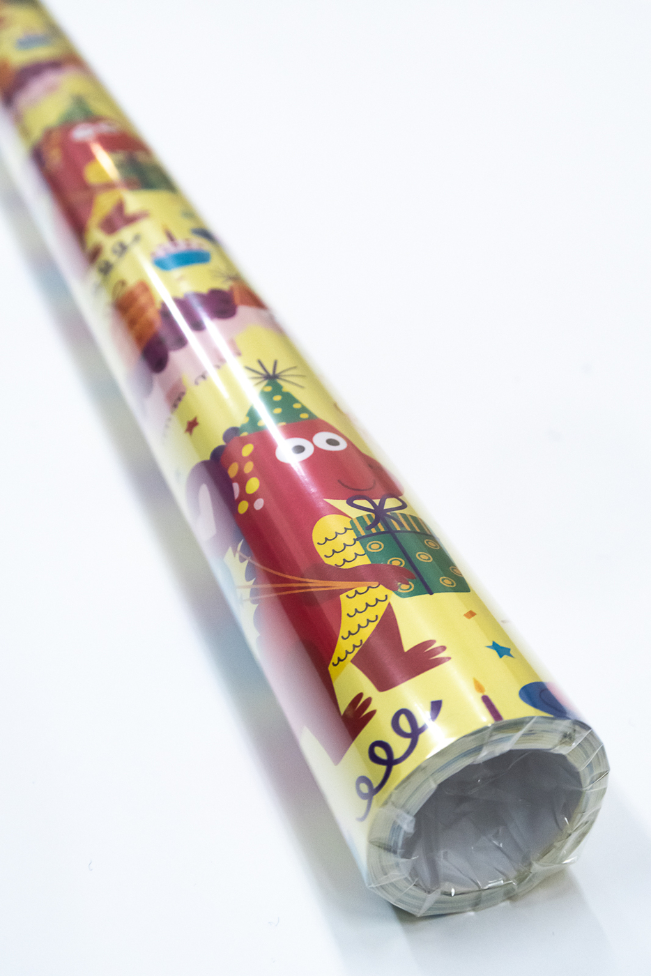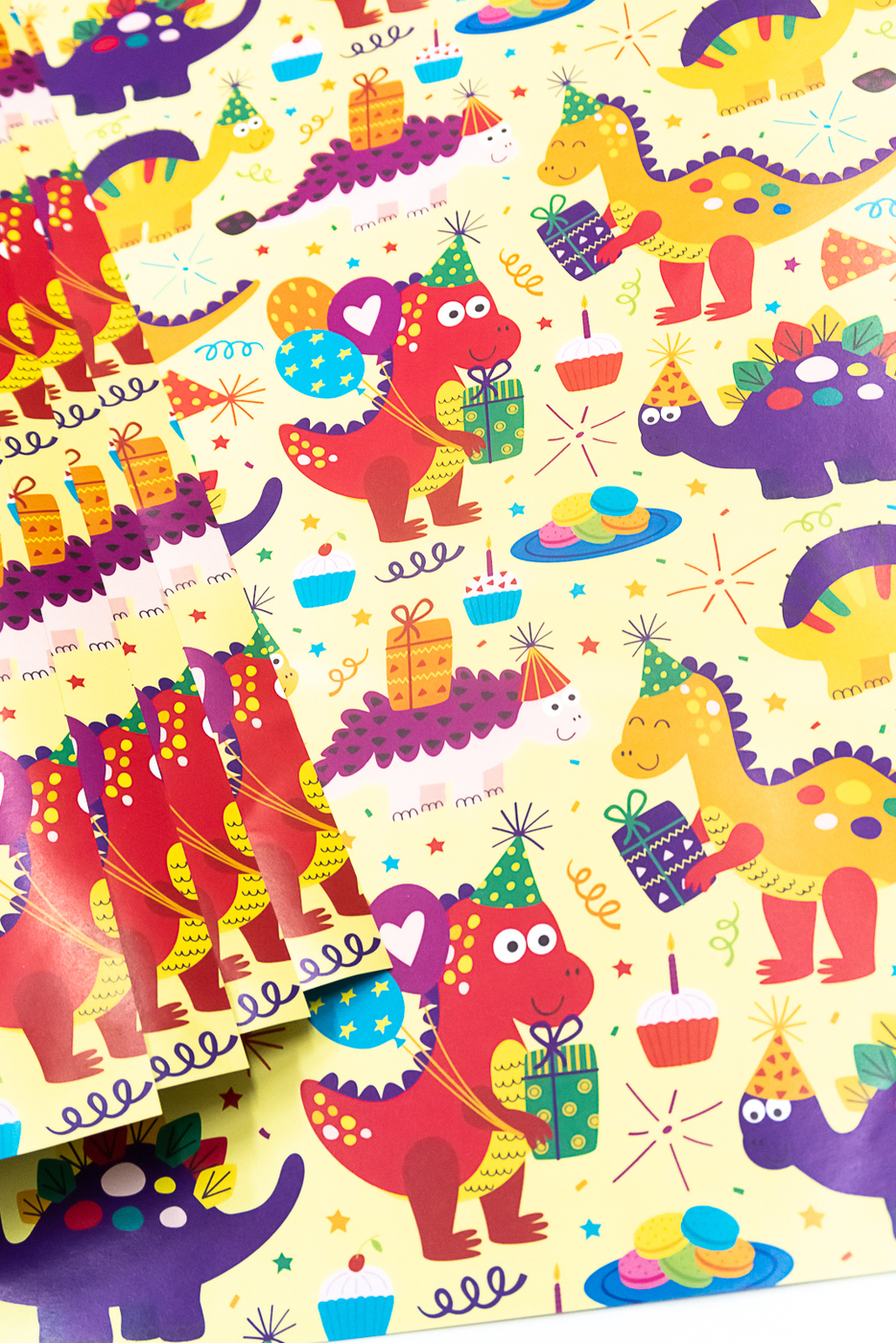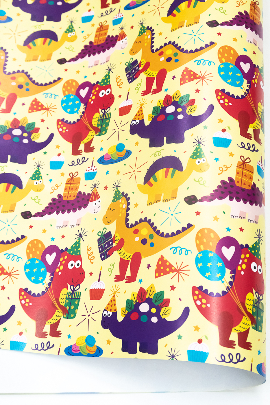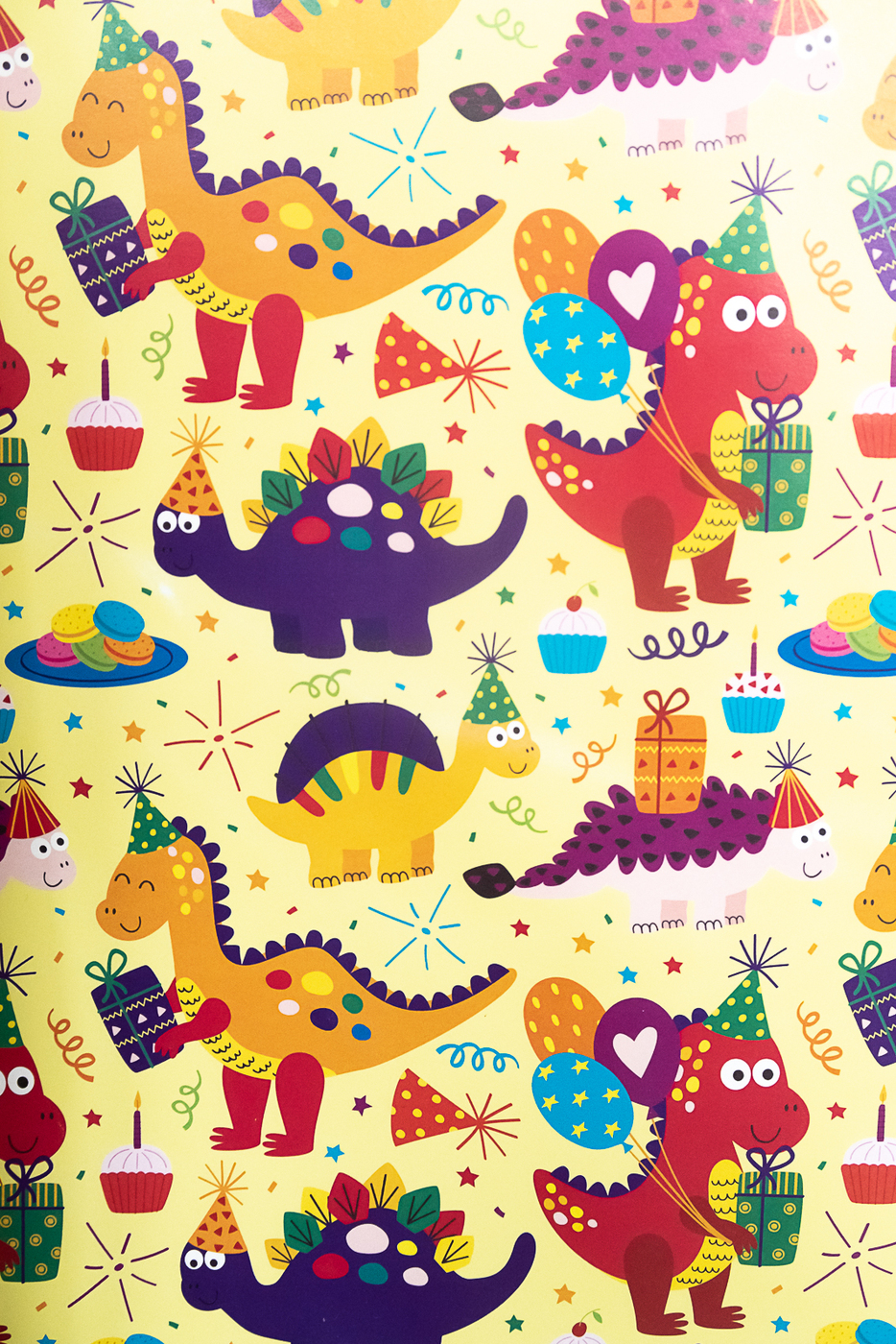 Бумага упаковочная подарочная "дино-праздник", в наборе 4 листа 68х98см, Т-Пак