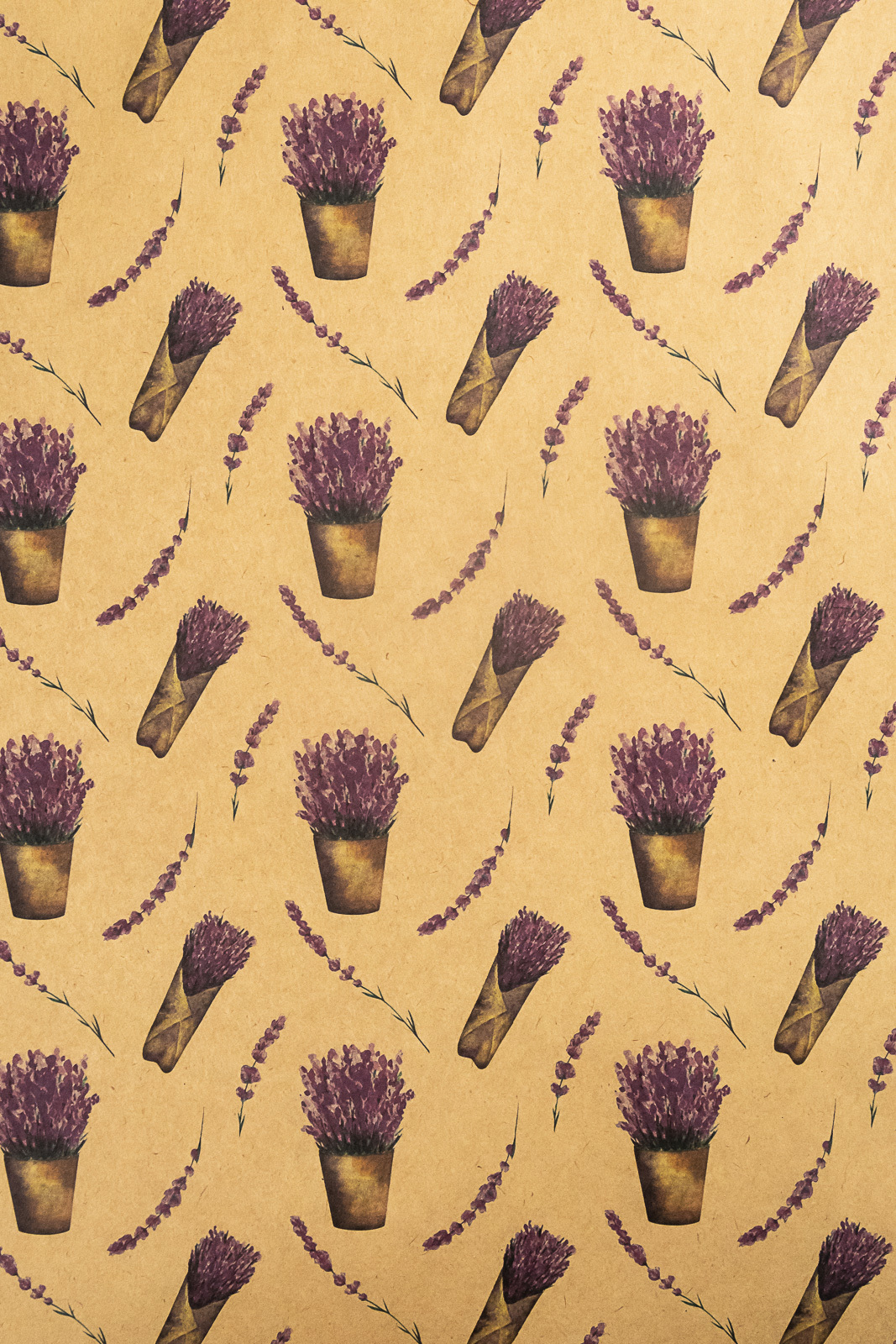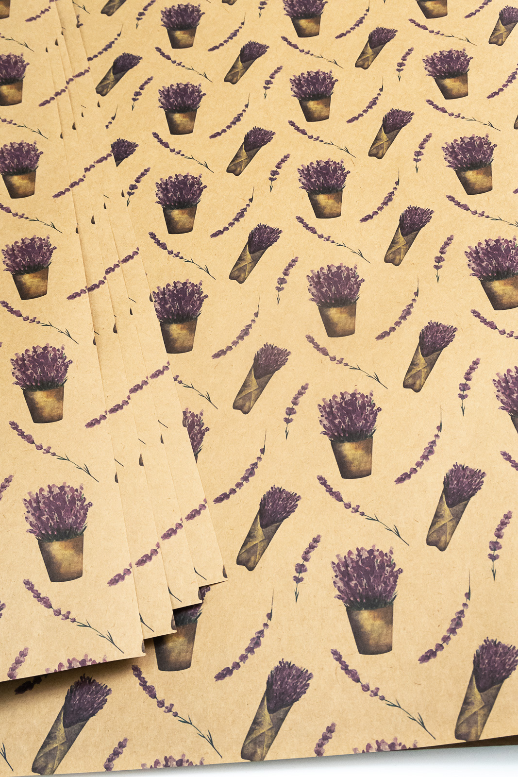 Бумага упаковочная подарочная крафт "итальянская лаванда", в наборе 4 больших листа 70х100см, Т-Пак