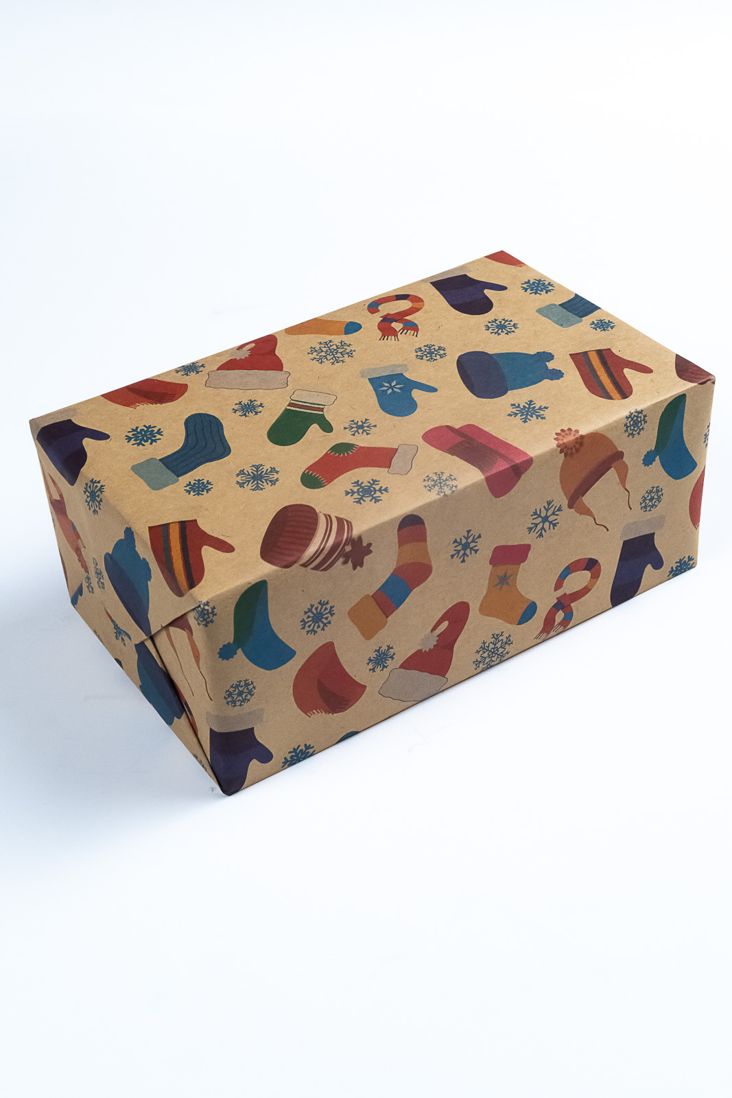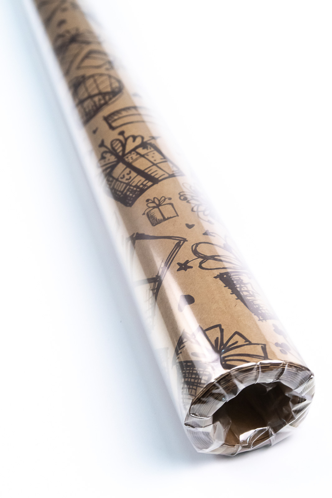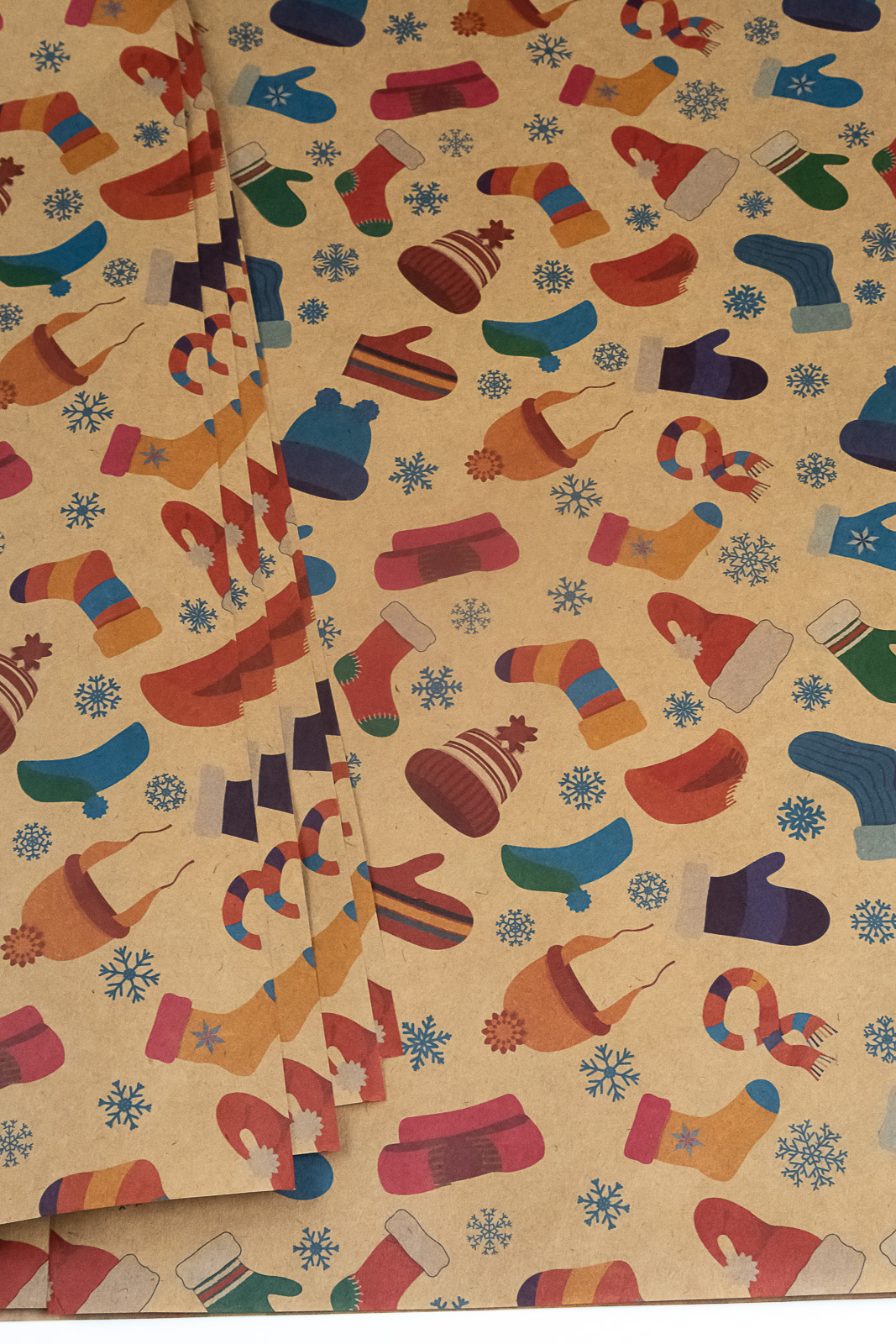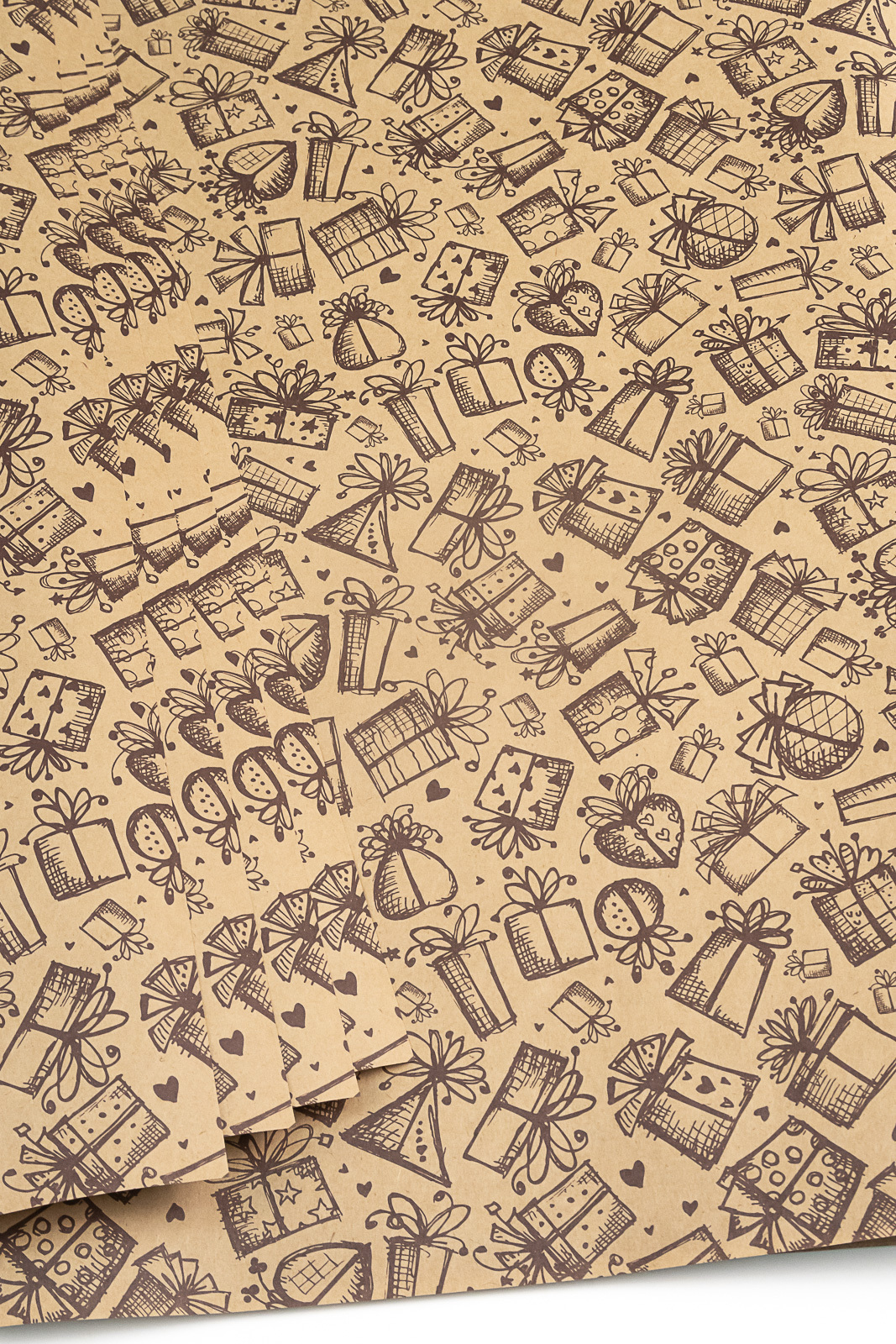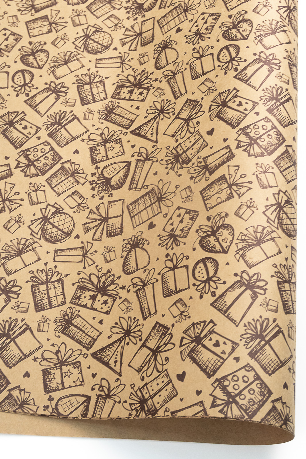 Бумага упаковочная подарочная крафт "карусель подарков", в наборе 4 больших листа 70х100см, Т-Пак