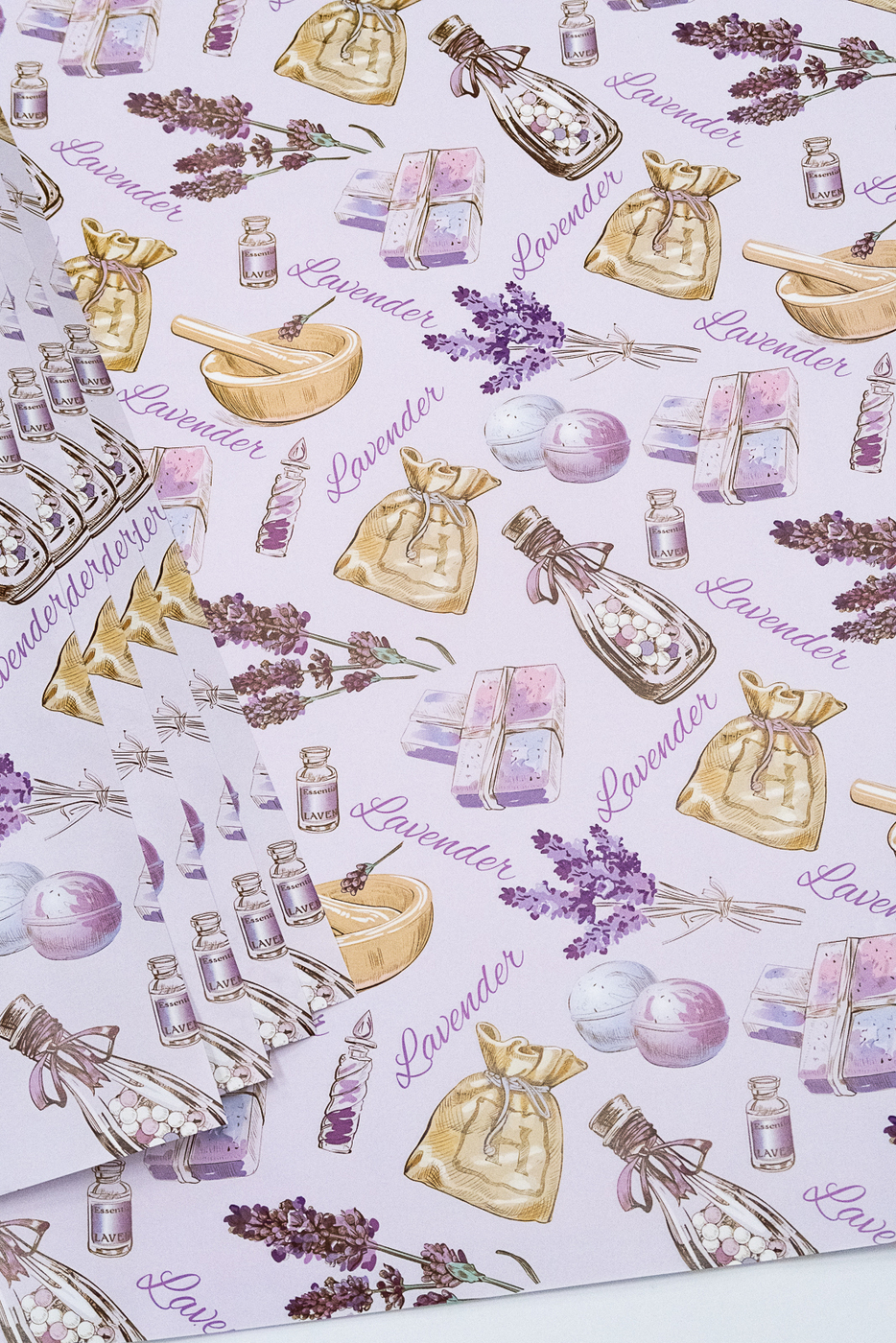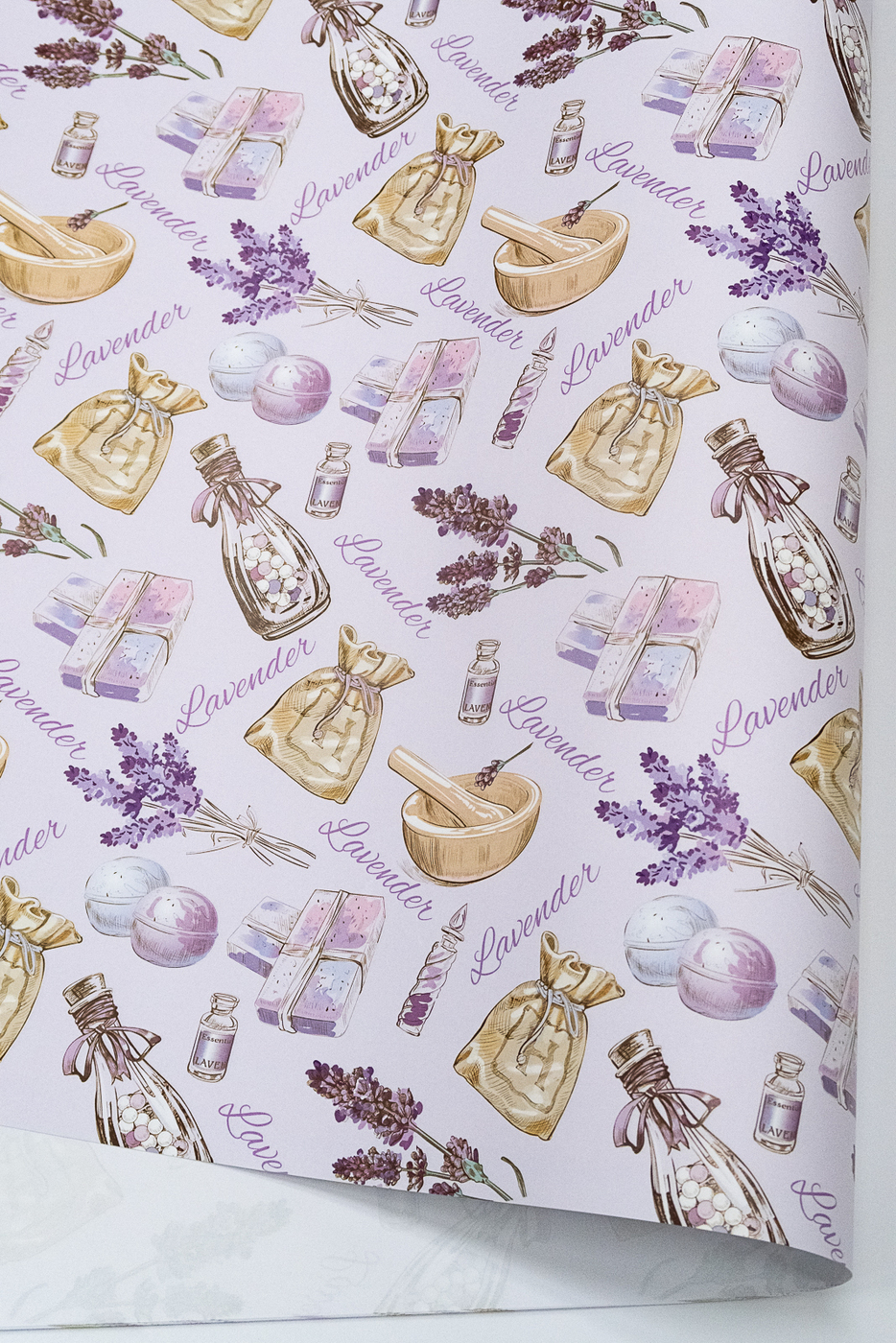 Бумага упаковочная подарочная "лавандовая косметика", в наборе 4 листа 68х98см, Т-Пак