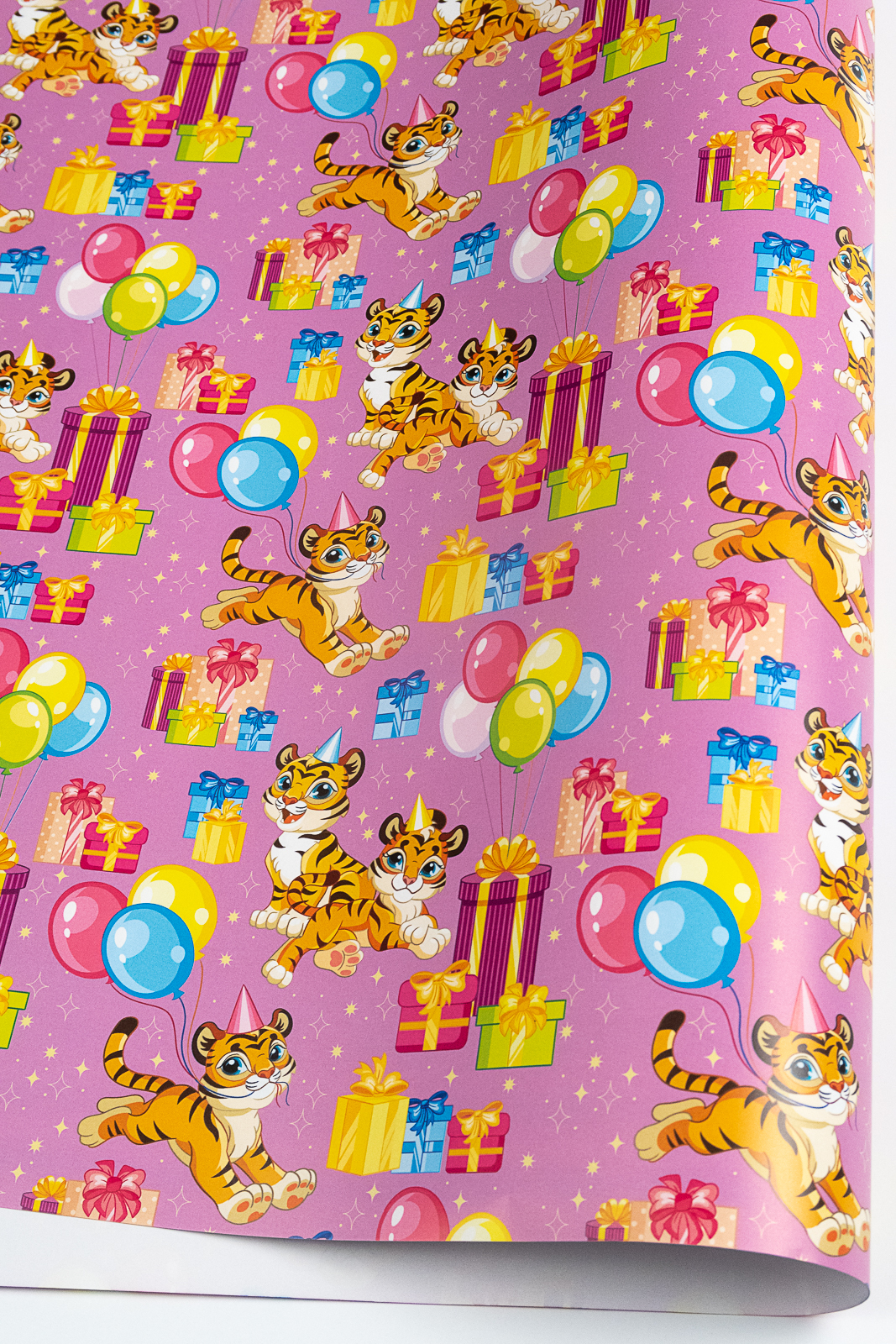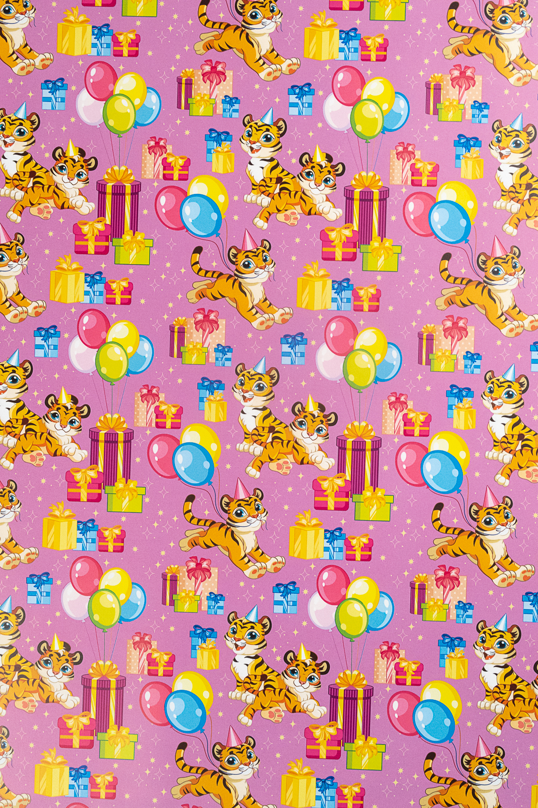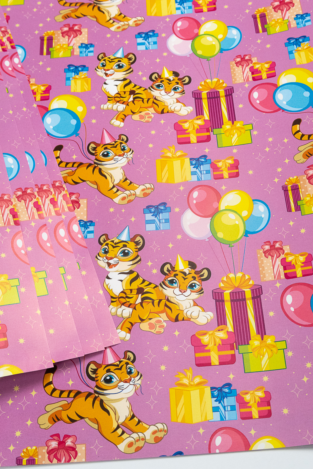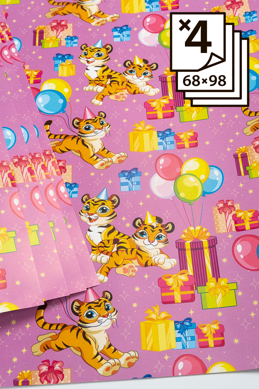 Бумага упаковочная подарочная "тигрята-фест", в наборе 4 листа 68х98см, Т-Пак