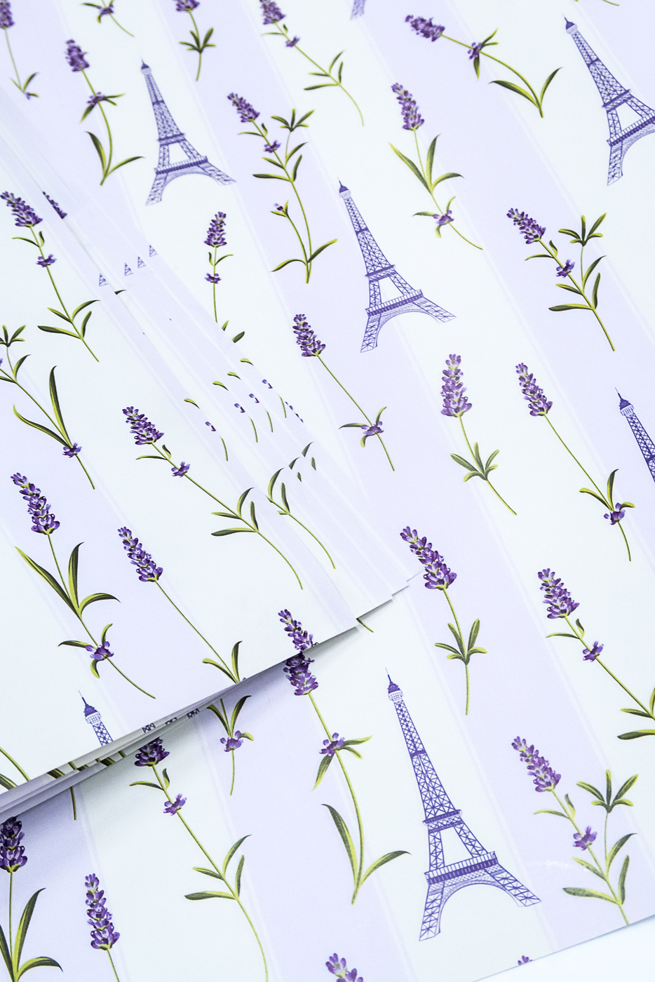 Бумага упаковочная подарочная "цветы - парижская лаванда", в наборе 4 листа 68х98см, Т-Пак