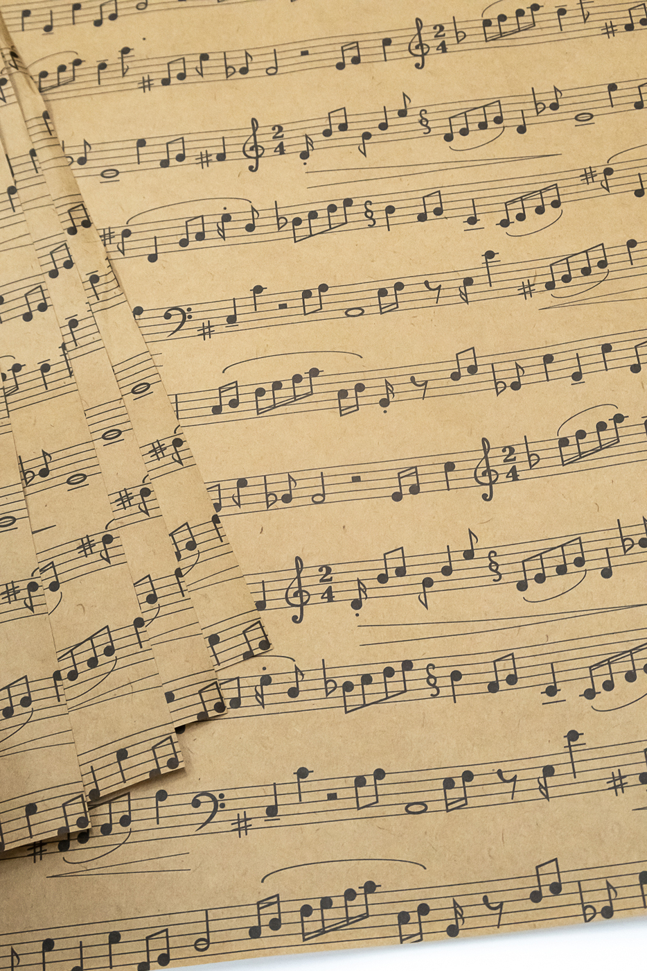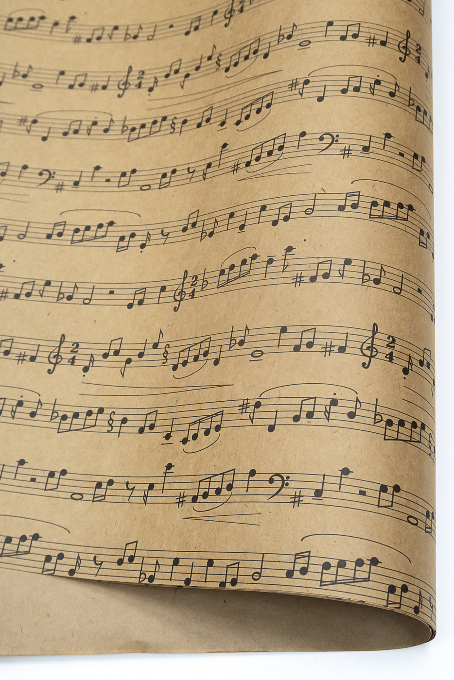 Бумага упаковочная подарочная крафт "ноты", в наборе 4 листа 70х100см, Т-Пак