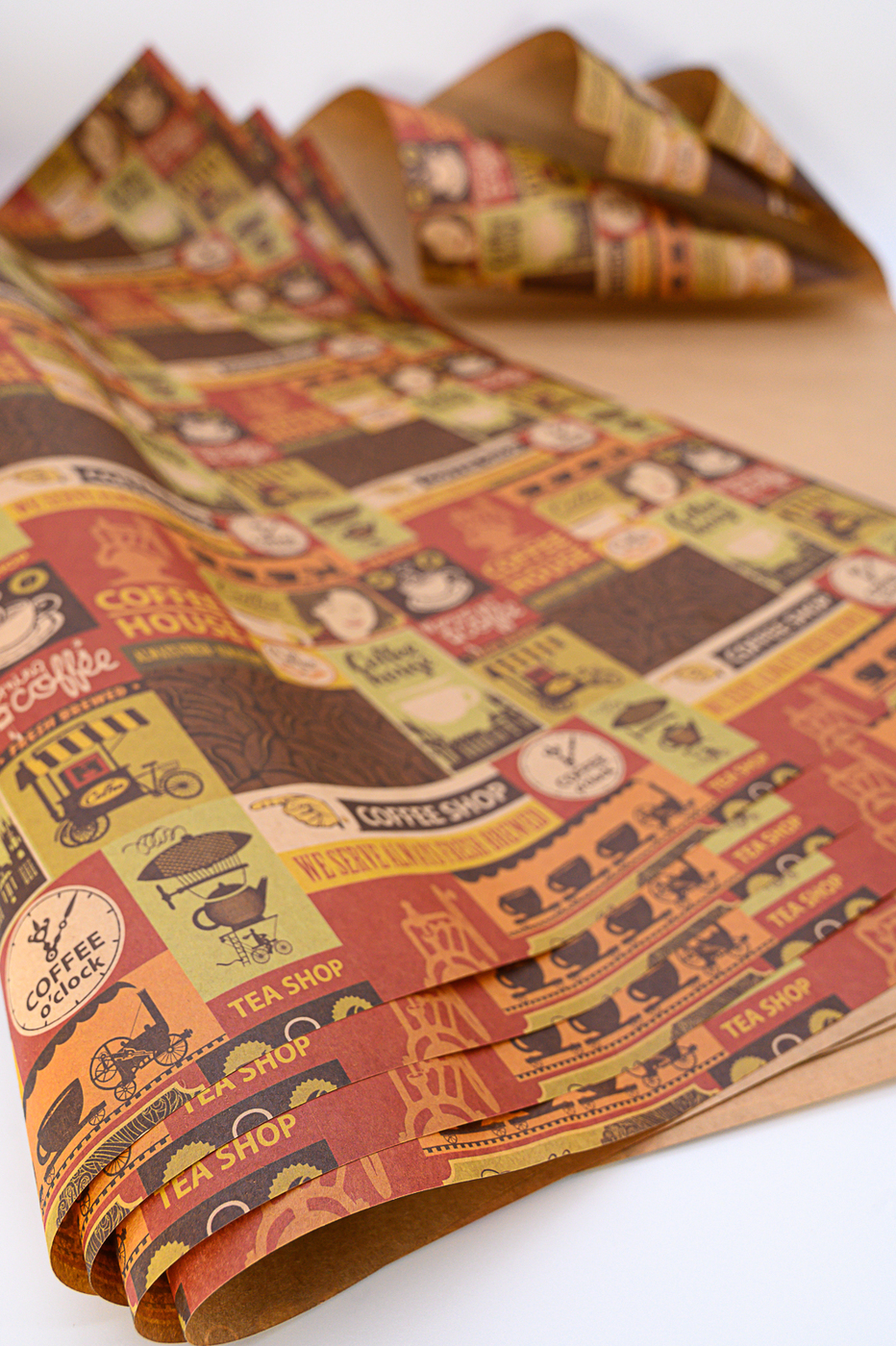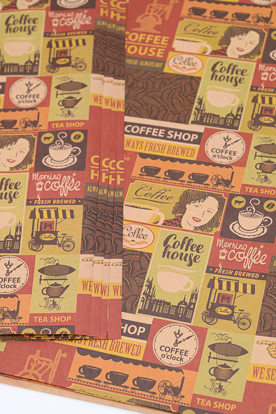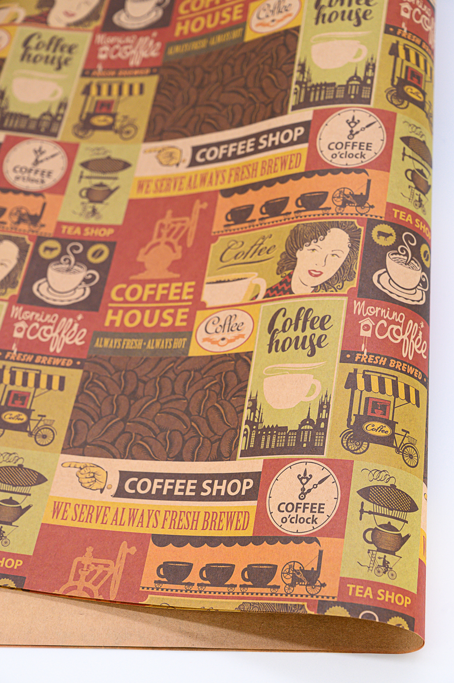 Бумага упаковочная подарочная крафт "кофе", в наборе 4 листа 70х100см, Т-Пак