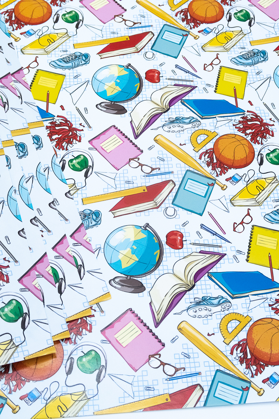 Бумага упаковочная подарочная "школьная пора", в наборе 4 листа 68х98см, Т-Пак