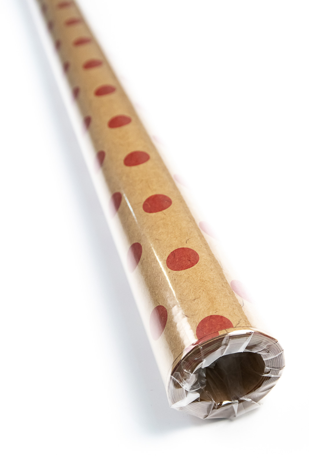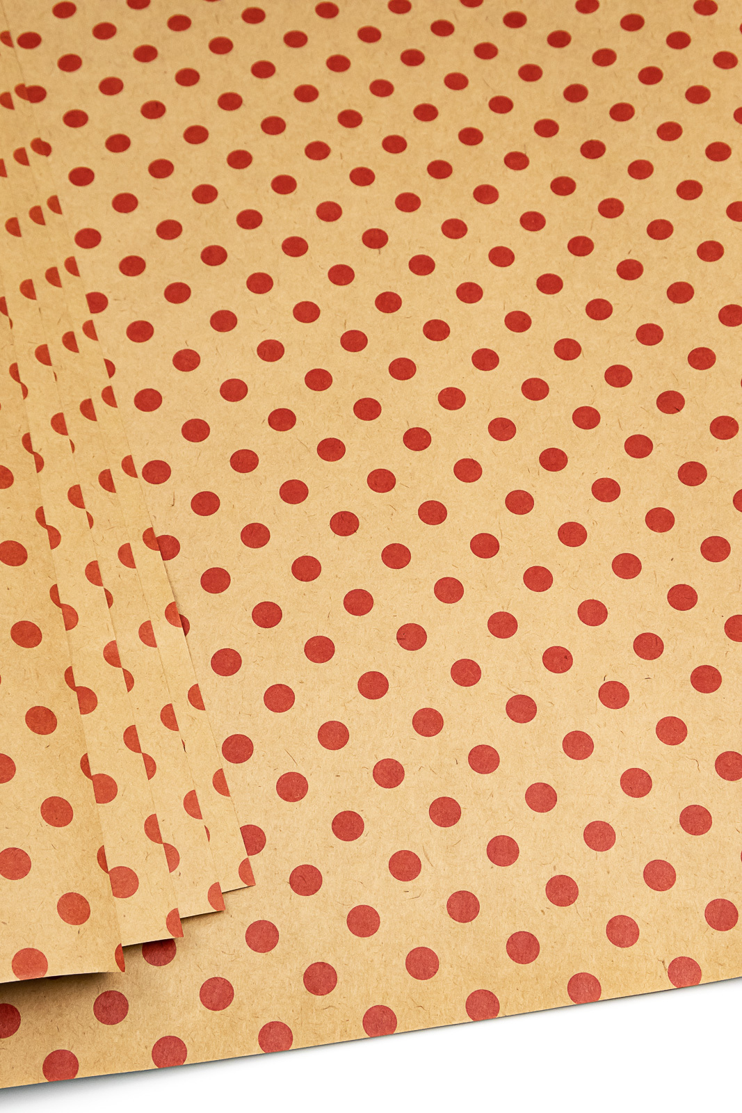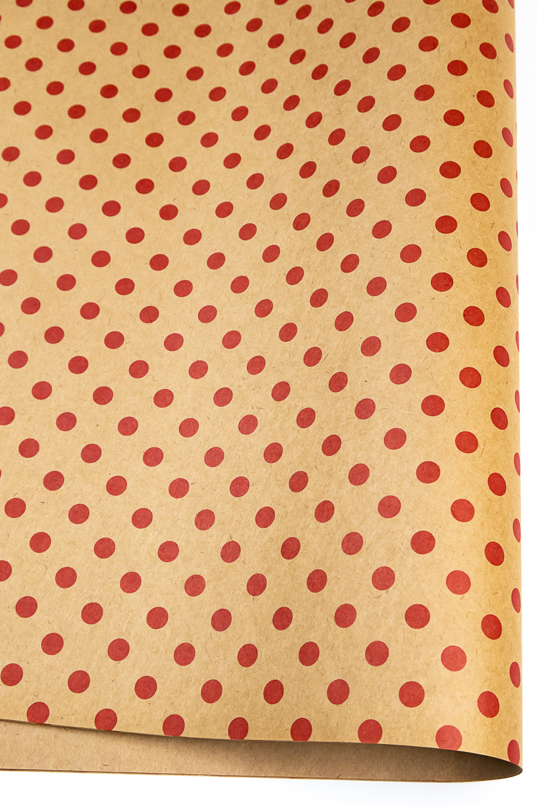 Бумага упаковочная подарочная крафт "горошек красный", в наборе 4 больших листа 70х100см, Т-Пак